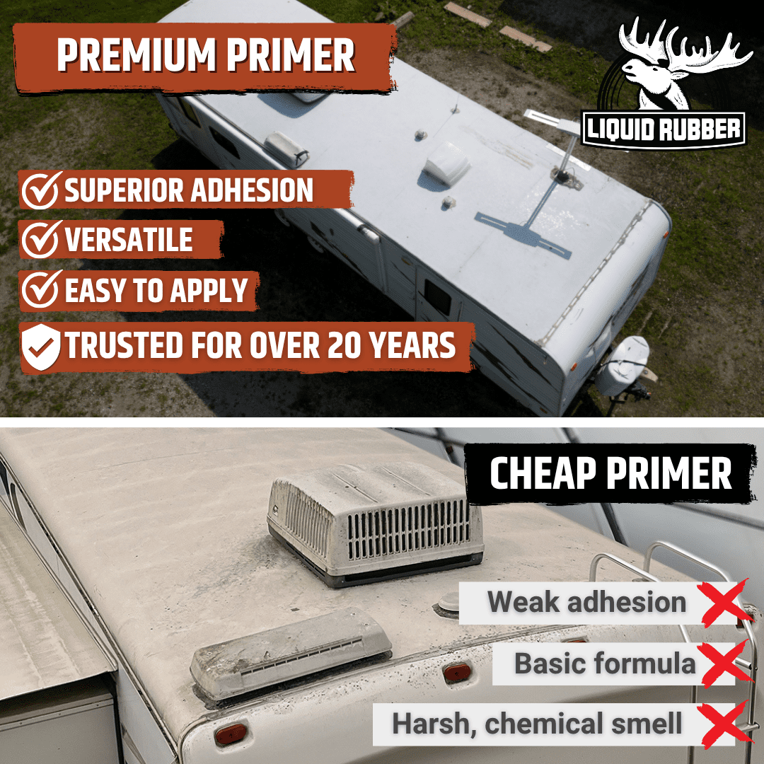WHY EPDM PRIMER – EPDM Primer is a rubber polymer water-based roofing primer, designed for adhesion bonding on EPDM surfaces. RV ROOFING MAINTENANCE – Weatherproof RV roofs and other EPDM rubber surfaces by first applying this EPDM Primer before applying the actual waterproof sealant or seam tape EASY TO APPLY – Apply using a conventional brush or roller equipment, may also be sprayed using a delivery system and nozzles appropriate for this material APPLICATION – All surfaces should be clean, dry, and free of contaminants that may result in a surface that is uneven or not sound FOR A BULLETPROOF SYSTEM – Liquid Rubber RV Smart Cleaner before Primer application, EPDM Primer improves adhesion for Seam Tape and other Liquid Rubber RV Roof Coating
