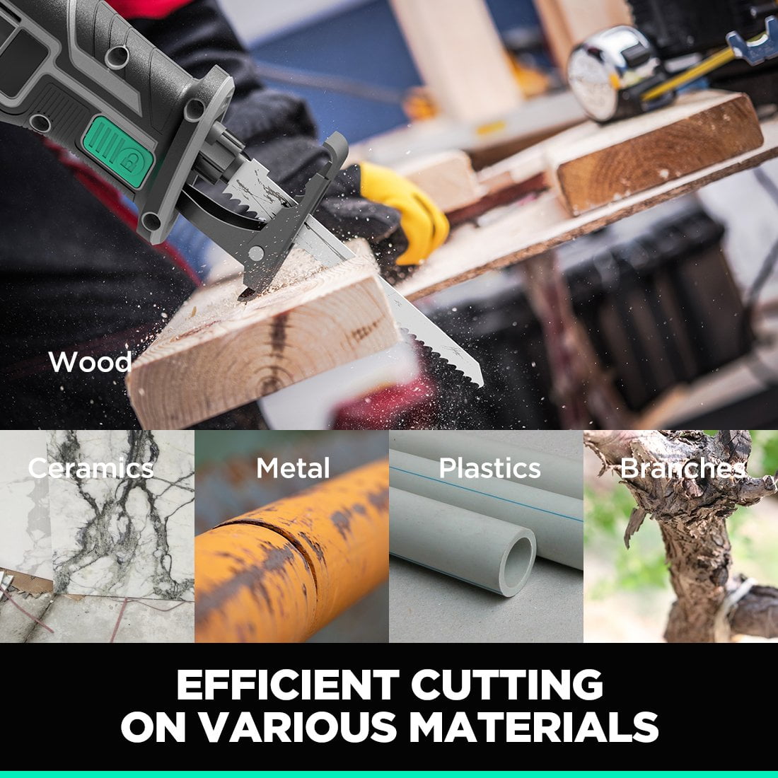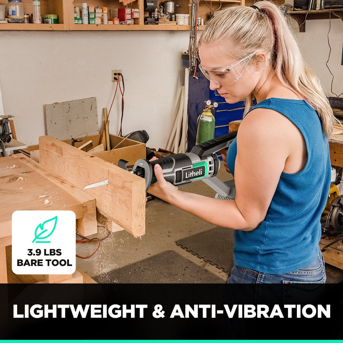 Litheli portable reciprocating saw is driven by a powerful pure-copper motor that delivers up to 3000 strokes per min by 1″ (25.4mm) stroke length. Features a tool-free blade release chuck, this electric sawzall allows you to quickly change versatile blades. 3.9 lbs bare tool weight makes this cordless reciprocating saw perfect for DIY. Soft rubber handle designed to comfortably fit in hand for improved control with minimal vibration. Comfortable soft-grip silicone handle suitable for right and left-handed use. Litheli reciprocating saw cordless with 20V SMART-BRAINED Li-ion battery, features the upgraded protection against overcharge, overheat, short circuits. Litheli offers a 5-year warranty for tools and a 3-year warranty for batteries & chargers.