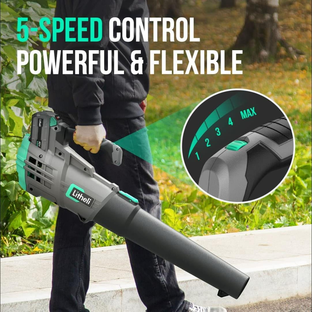 Litheli 40V Cordless Leaf Blower with Variable Speed Control Max 85MPH 350CFM Axial Blower with 2.0Ah Battery & Charger