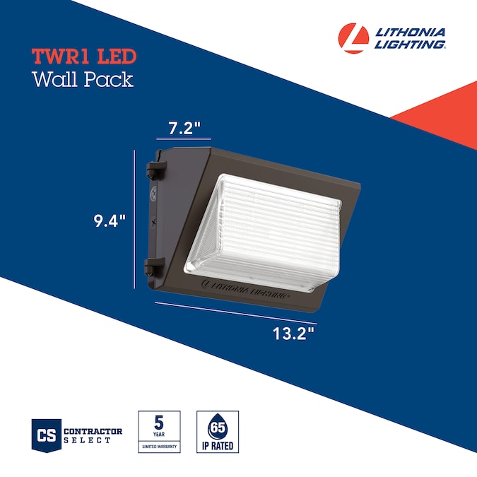 • DESIGN: The Lithonia Lighting TWR1 LED wall pack is equipped with adjustable lumen output (up to 8,500 lumens), switchable CCT (30K/40K/50K), and a switchable photocell allowing the contractor to customize to a level perfectly suited for the job site