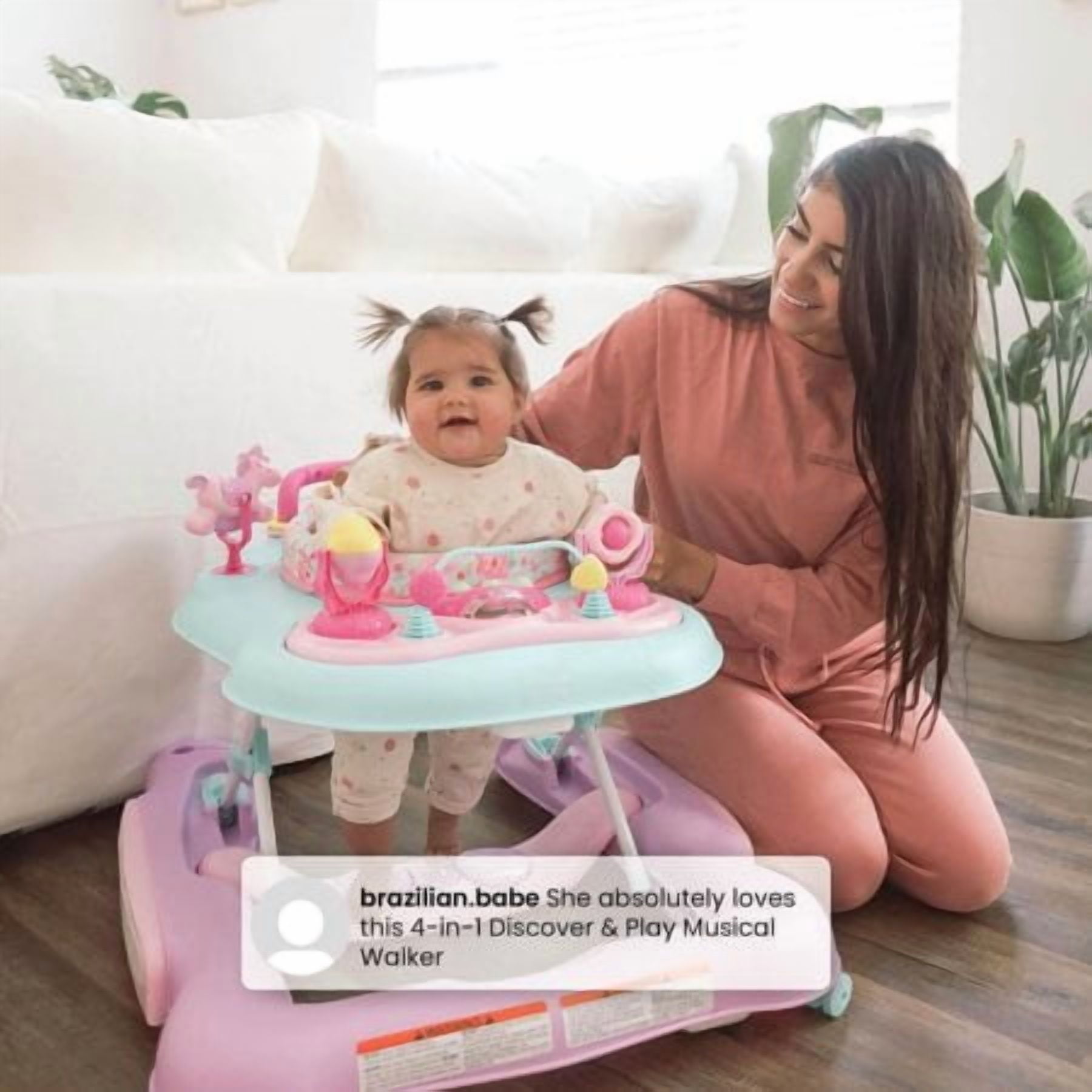 Little Folks 4-in-1 Discover & Play Musical Walker, Aqua Vines- Unisex