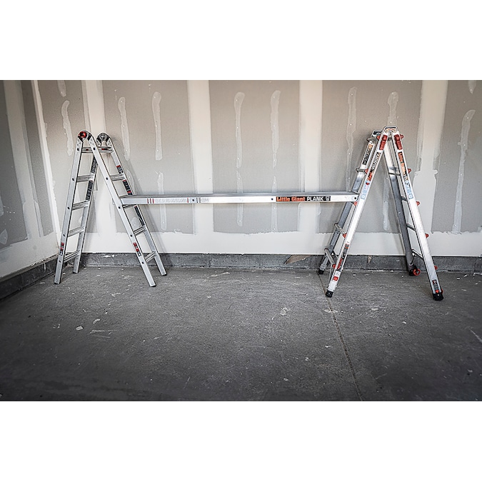 The Little Giant® Plank™ accessory turns your multi-position ladder into a two-person trestle-and-plank scaffolding system when you attach Trestle Brackets™ to your ladder. The plank’s hooks secure to the ladder rungs of the inner and outer section of your ladder to give you a comfortable, solid platform to stand on while you paint, hang drywall or install light fixtures. With the plank, you can replace expensive and labor-intensive scaffolding systems in a fraction of the time. This plank is certified as a two-person ladder with a load capacity of 500 lbs. made from a lightweight aluminum material, the plank is light enough to transport and durable enough to support you while you work.