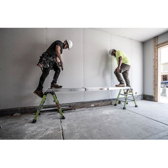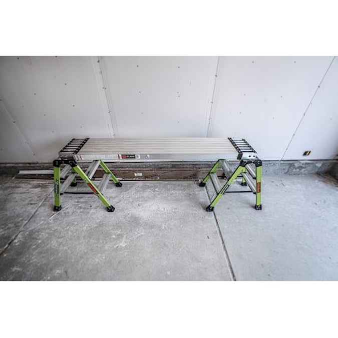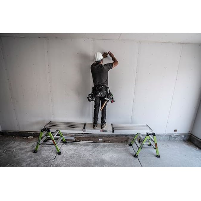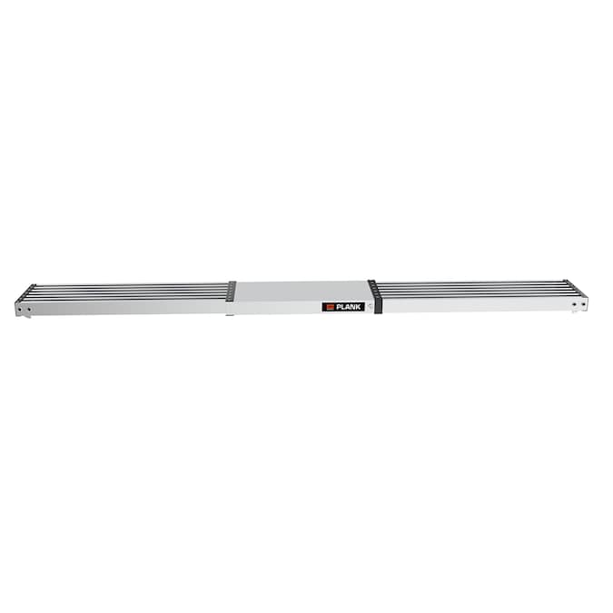 The Little Giant® Telescoping Plank™ turns your multi-position ladder into trestle-and-plank scaffolding when you attach Trestle Brackets™* to your ladder. The Plank hooks securely to the ladder rungs of the inner and outer section of your ladder to give you a comfortable, solid platform to stand on while you paint, hang drywall or install light fixtures. The Telescoping Plank allows you to replace expensive and labor-intensive scaffolding systems and adjusts to the length you need—available in 6’ to 9’, 8’ to 13’, 9’ to 15’ sizes. The lightweight Telescoping Plank is made from aircraft-grade aluminum and is rated to hold two people with a maximum weight of 500 lbs.