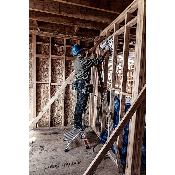 • Lightweight aluminum stepladder uses a non-slip staircase design for comfortable and sturdy use