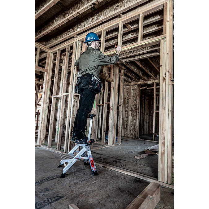 Not all tasks require a full-sized ladder, and that is where the Jumbo Step™ from Little Giant® comes in. The Jumbo Step is a lightweight aluminum stepladder, and with its compact design, it is the perfect tool for small-scale or at-home projects. Available in 2, 3 and 4-step models, this ladder meets or exceeds all OSHA and ANSI standards, and is rated Type IAA to hold 375 lbs. this ladder features an innovative top cap tool tray and handrail. The handrail feature extends to improve safety and minimize feelings of vertigo. The innovative top cap has slots for all of your necessary tools, including your smart phone. Now, you can keep all of your supplies within arm’s reach while working on the ladder. The Jumbo Step was designed to be a comfortable ladder throughout the usage process. Its staircase design means that each step feels as natural as ascending stairs. The treads on the steps are also slip-resistant for extra security. With its extra-wide, slip-resistant feet, the Jumbo Step is perfect for working over grates. Trust that your ladder will hold steady as you complete your tasks. For any task that does’t require a full-sized ladder, the Jumbo Step is the tool you need.