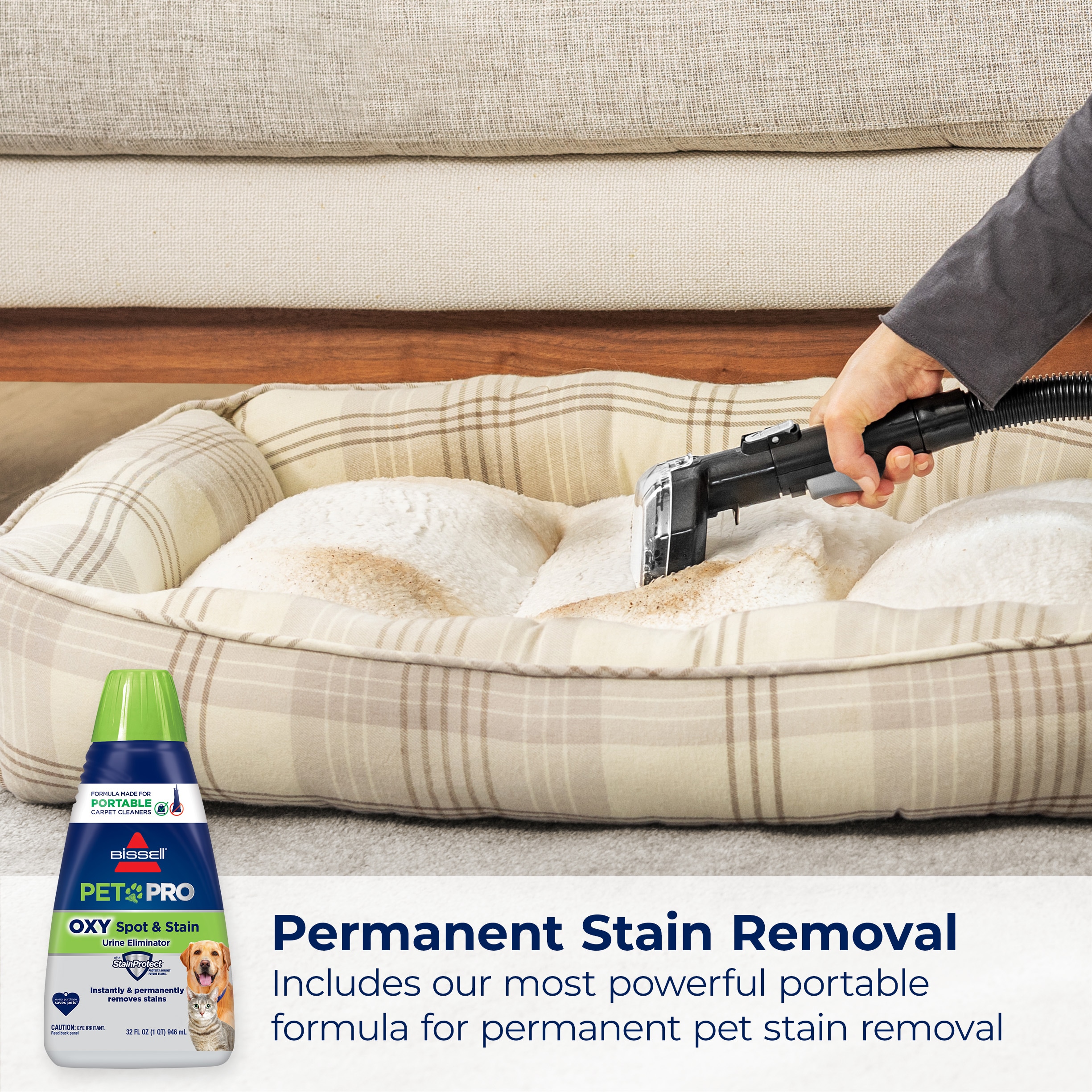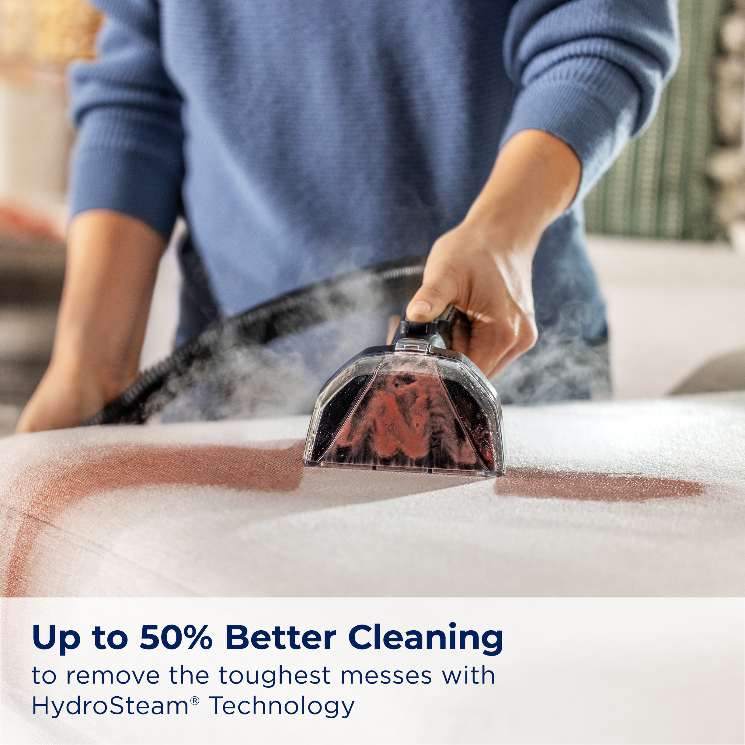 Tackle the toughest, set-in stains with BISSELL® Little Green® HydroSteam® portable deep cleaner, designed to clean messes up to 50% better with HydroSteam® Technology. With 3 different cleaning modes, you can clean all types of messes — like sticky spills on carpet or stuck-on spots on sneakers — as well as remove stubborn pet smells and stains with the help of BISSELL® PET PRO OXY Spot & Stain Urine Eliminator with StainProtect® Formula. And this machine doesn’t just clean up after pets, it helps save them too! Every purchase makes it possible for BISSELL to continue our support of BISSELL Pet Foundation® and its mission of saving pets in need. When you purchase a BISSELL® product, you help save pets, too. Our products are engineered to clean even the toughest messes so pets can stay at home and out of shelters