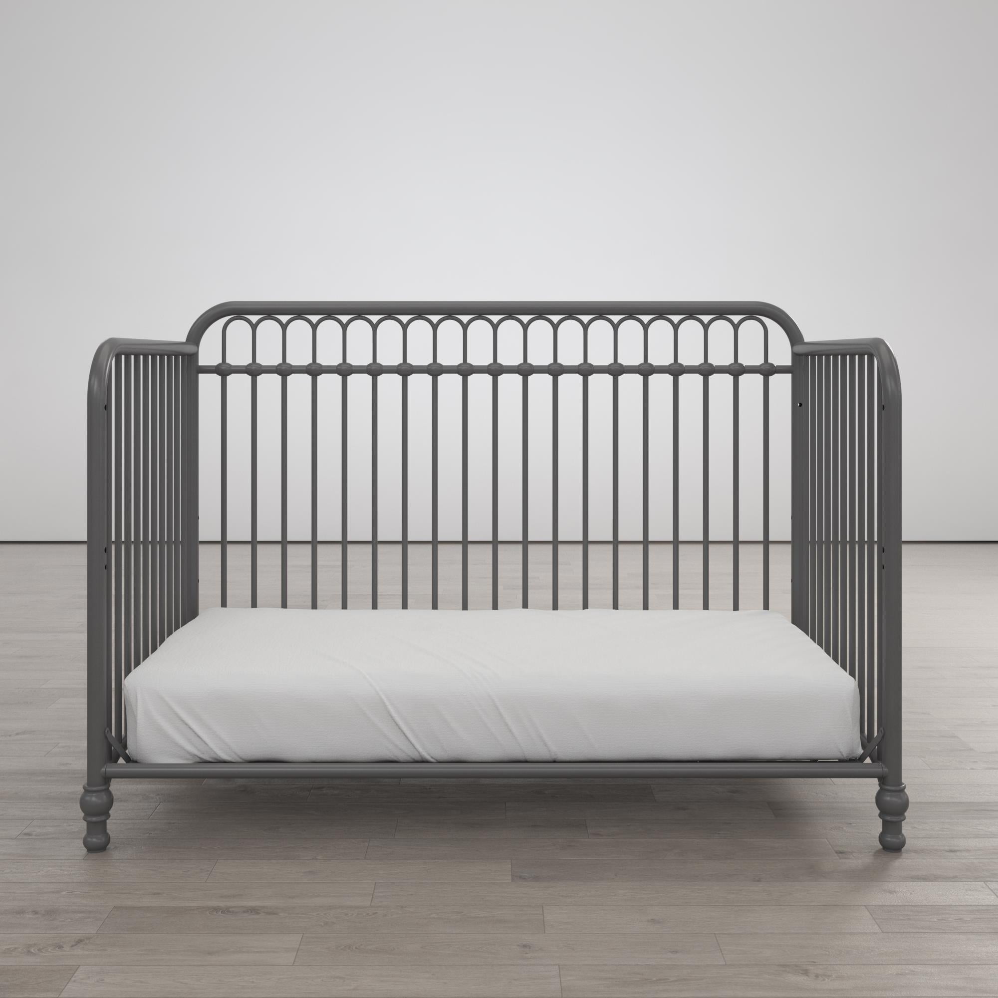 Modern 3-in-1 Convertible Baby Crib: Emanating pure happiness, this jubilant nursery piece for girls or boys transitions between crib, toddler daybed, and toddler bed positions Grows With Your Child: Shift gears from one mattress height to another to accommodate your infant’s development with 3 adjustable platform base levels to keep them safe and secure. Standard crib size mattress sold separately Vintage Inspired: The crib’s strong all-metal build features rounded edges, ornate inner arched accents on the open bar back panel, and bun legs to showcase a high-end look without a high-end price tag Out of Harm’s Way: JPMA Certified to meet or exceed all applicable CPSC/ASTM standards and finished in a non-toxic powder coating that is free from phthalates, latex, lead and BPA, providing a safe space to nurture your baby is our ultimate mission