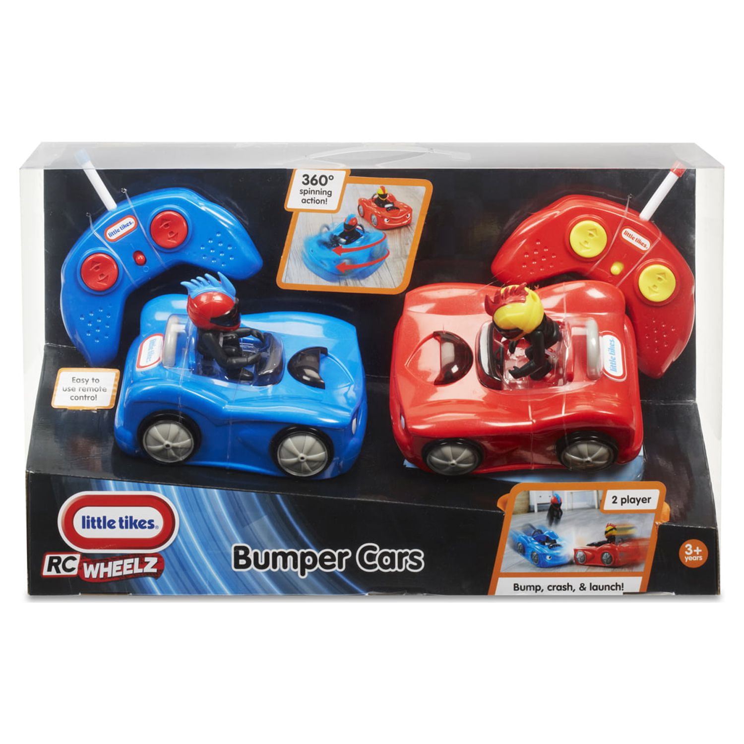Little Tikes RC Bumper Cars Set of 2: Includes 2 fully functioning Bumper Cars, 2 figures and 2 remote controls Easy to steer remotes, ergonomically designed for preschooler hands Be the first to crash into your opponent and launch their driver to win Bumper car toys can be spun a full 360 degrees
