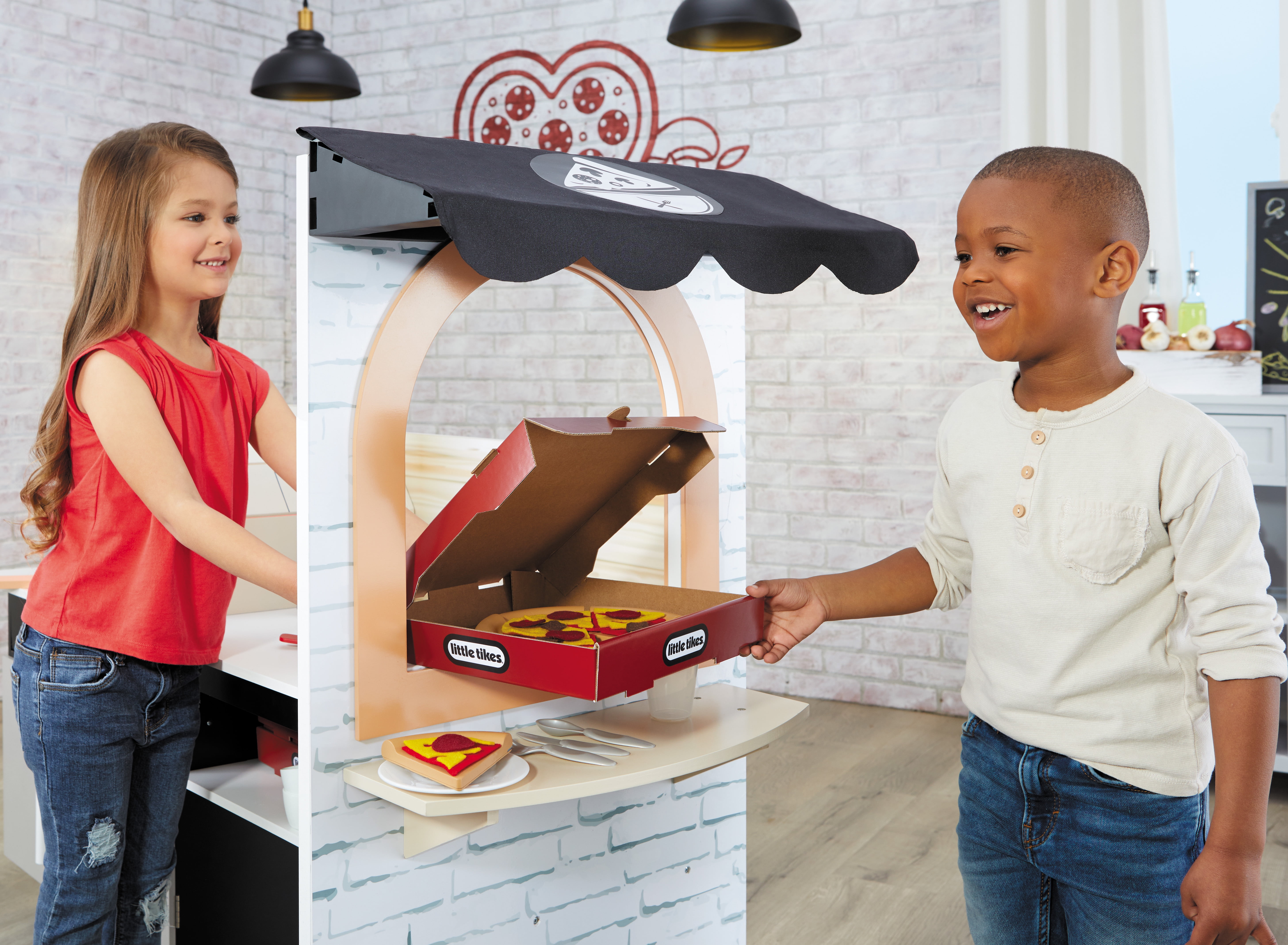 Role play becomes gourmet with this real looking, sturdy and durable wood pizza restaurant, where kids can dream up and bake their favorite pizzas and then serve them to friends and family. Inspired by those rustic pizza restaurants with the unique and special wood burning ovens, this dual-sided play allows kids to play pizza chef, server or customer. Kids will be encouraged to cook up their imagination and creativity thanks to the 20+ accessories, including pizzas and tons of stick-on felt toppings, as well as all the utensils and serving items they’ll need. And the realistic lights and sounds add to the excitement. The cabinet has working doors and drawer for tons of storage and easy cleanup. This set is molto bene.It’s time to cook up some fun in the kitchen! The Little Tikes wooden play kitchen with accessories offers a great place to spend time playing with your toddler and preschooler, whether pretend baking their favorite tasty dish or cleaning up dishes after a wonderful meal! The perfect toy gift for ages 3-5 year old girls and boys. The wooden play kitchen play sets come with all of the accessories needed to keep girls and boys busy all day with imaginative pretend play! With its realistic lights sounds and interactive features, these popular wooden play kitchen play set looks just like a real kitchen in your house! From MGA Entertainment, creator of the beloved Fashion, Collectible, Girls and Baby Doll lines LOL Surprise, Rainbow High, Na Na Na Surprise, Bratz, MGA’s Dream Ella, MGA’s Glitter Babyz, Lalaloopsy, Poopsie Surprise, and Baby born Surprise, as well as Little Tikes and many other favorites.
