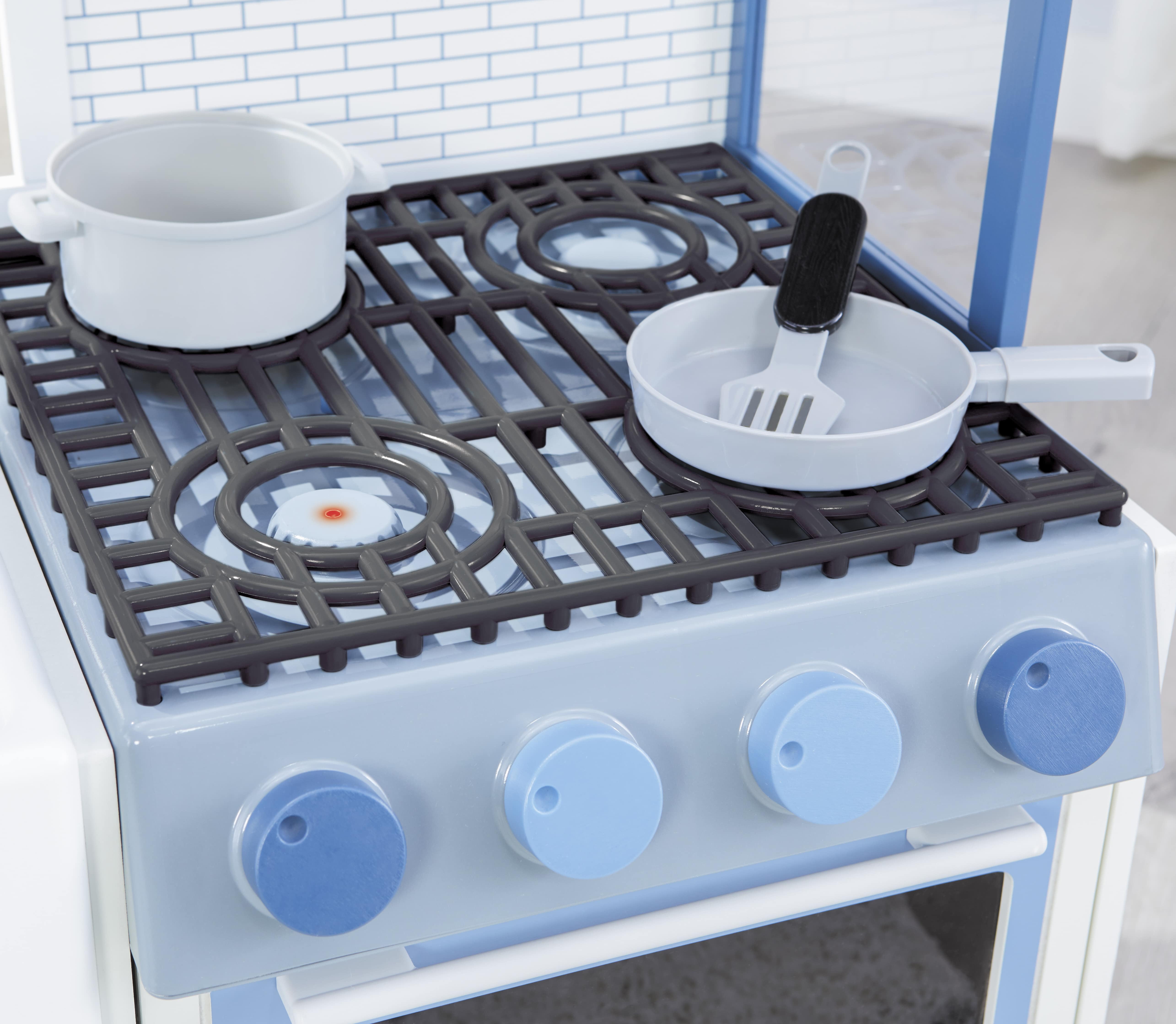 Little Tikes Wood Chef’s Kitchen 21- Piece Wooden Pretend Play Kitchen Toys Playset, Realistic Lights & Sounds, Blue and White, Kids Girls Boys Ages 3 4 5+
