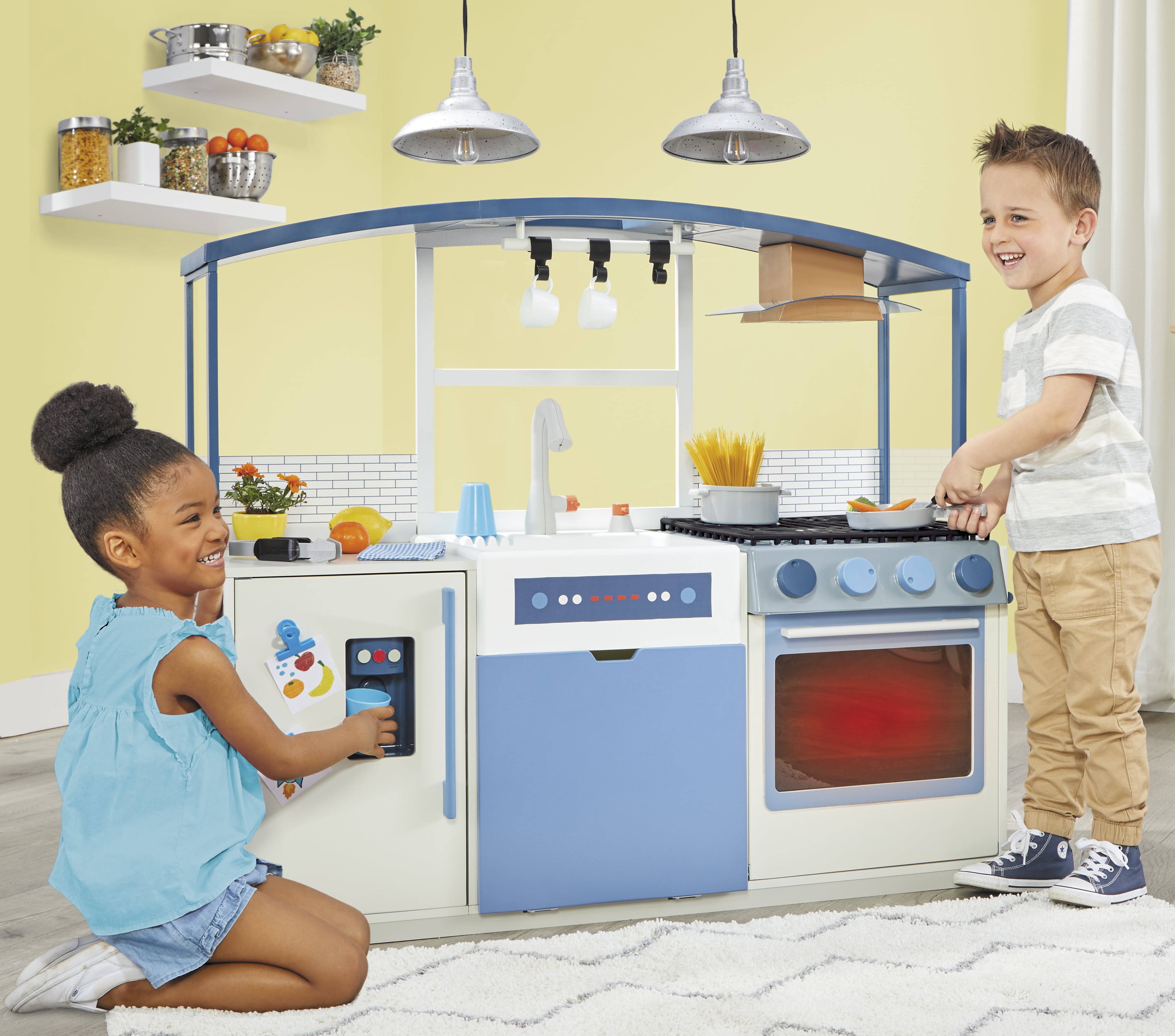Little Tikes Wood Chef’s Kitchen: REALISTIC: This designer inspired kitchen is equipped with everything kids will need to let their inner chef and social entertainer out. And realistic buttons, knobs, dials, lights and sounds enhance play. DURABLE WOOD: This sturdy wood kitchen will last and last and has lots of storage for easy clean up. ENCOURAGES IMAGINATION: With over 20 included and interactive accessories kids can imagine, create and practice making their favorite recipes, and explore the responsibilities of safely cooking in a kitchen and cleaning up after themselves. SPECIAL FEATURES: The canopy comes with built-in lights, hanging rack and vent hood. And the fridge features an ice dispenser that makes sounds and a front door that can be customized with notes and photos using the included clips. Plus, the oven lights up and has burners that make sounds for enhanced fun. PRODUCT INCLUDES: Over 20 interactive accessories like drinking glasses, coffee cups, pan, pot, tongs, spatula, kitchen towel and hooks. Age: 3+ Years