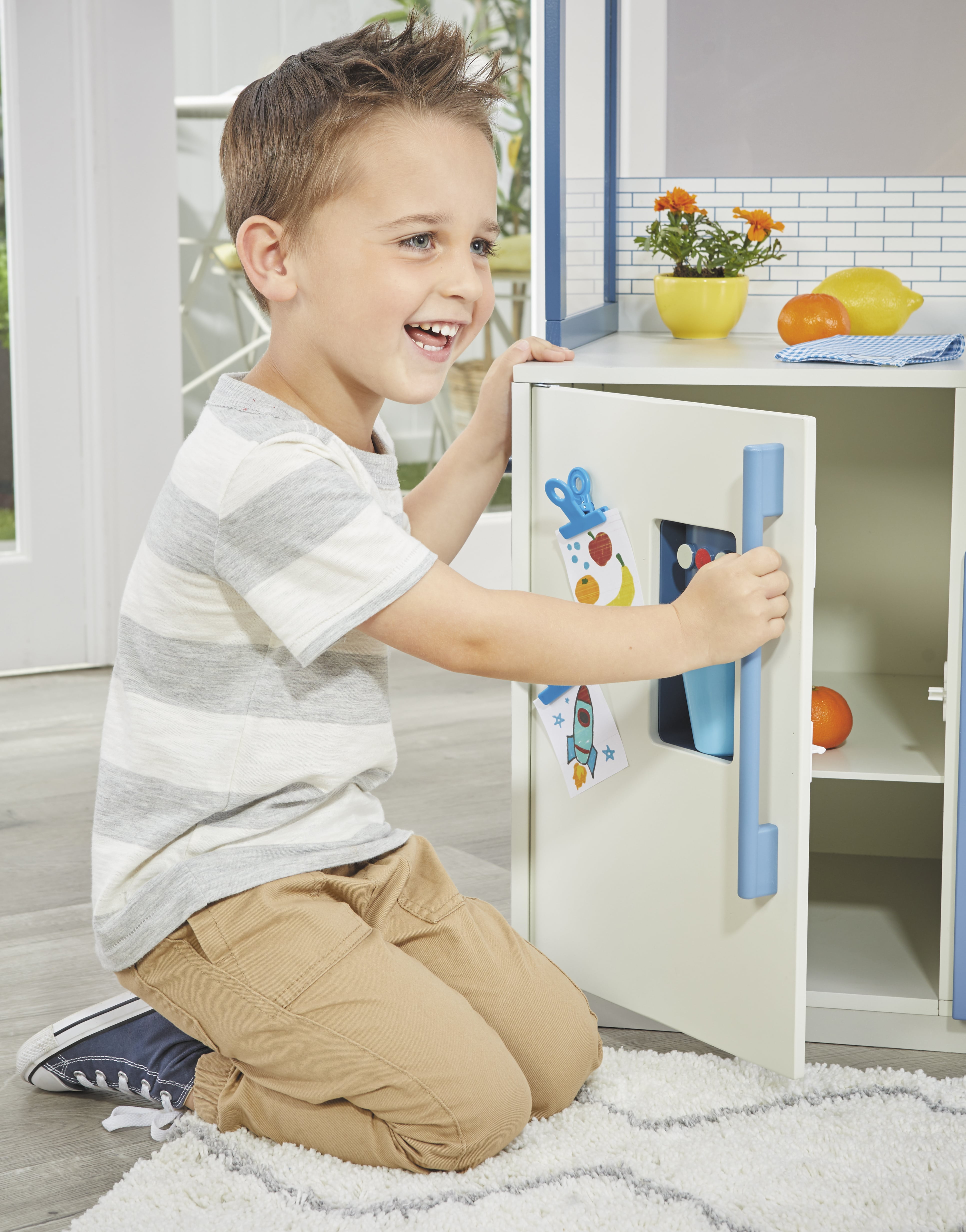 Get cooking with this sturdy real wood, gourmet kitchen playset. Kids will feel like a pro chef with the realistic buttons, knobs, dials, lights and sounds that really enhance play. It’s quite the designer’s kitchen with the canopy that comes with built-in lights, hanging rack and vent hood. And the fridge features an ice dispenser that makes sounds and a front door that can be customized with notes and photos using the included clips. Kids’ imaginations will really sizzle with an oven that lights up and burners that make sounds. So create the perfect menu with over 20 fun and interactive accessories, and let your inner chef imagine all the possibilities. Bon Appetit.It’s time to cook up some fun in the kitchen! The Little Tikes wooden play kitchen with accessories offers a great place to spend time playing with your toddler and preschooler, whether pretend baking their favorite tasty dish or cleaning up dishes after a wonderful meal! The perfect toy gift for ages 3-5 year old girls and boys. The wooden play kitchen play sets come with all of the accessories needed to keep girls and boys busy all day with imaginative pretend play! With its realistic lights sounds and interactive features, these popular wooden play kitchen play set looks just like a real kitchen in your house! From MGA Entertainment, creator of the beloved Fashion, Collectible, Girls and Baby Doll lines LOL Surprise, Rainbow High, Na Na Na Surprise, Bratz, MGA’s Dream Ella, MGA’s Glitter Babyz, Lalaloopsy, Poopsie Surprise, and Baby born Surprise, as well as Little Tikes and many other favorites.