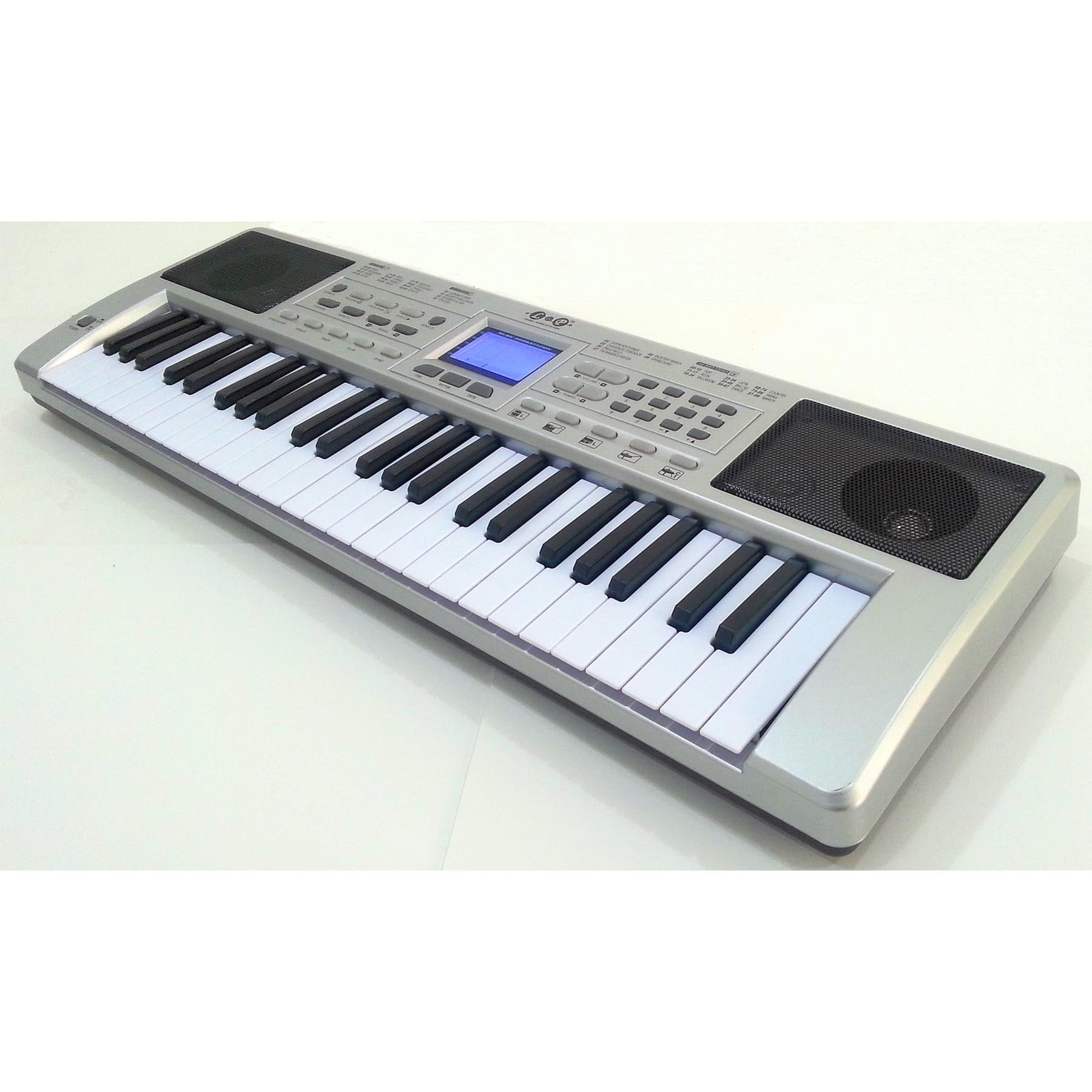 49 Key Electronic Keyboard. Stereo Speakers. LCD Screen to teach notes and chords. Record and Playback. Multiple Drums, rhythms, demo songs and effects.