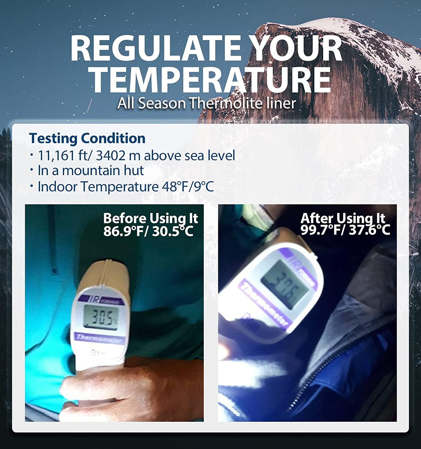 Polyester Stay Warm & Comfy: We designed this sleeping bag liner sheet to provide you with a simple way to stay warm and comfortable even in the outdoors. When used with a sleeping bag, this travel sleeping bag liner can add up to 22°F/ 12°C warmth to your sleeping bag for a good night’s sleep Soft & Elastic Fabric: Each hiking sleeping bag liner is made using only soft, smooth and elastic fabric that locks in the warmth so you can sleep comfortably in your sleeping bag. It’s ideal for use both indoors and outdoors as well as helping keep dirt and bugs away Compact & Lightweight: Thanks to the lightweight and foldable design, you can easily roll this sleeping bag liner and take it with you anywhere you want. Our lightweight sleeping bag liners come with a carry sack allowing you to pack the mummy sleeping sack down to only 7″x4.5″ (17×11 cm) For All Your Adventures: Whether you’re going camping, hiking, traveling, backpacking or just spending some time in the woods, you can count on our liners for sleeping bags to add more comfort to all your outdoor adventures and can also be used at hotels or at home to stay comfy and warm For All Your Travels: Whether you’re spending some time in the woods or going on a road trip, our double sleeping bag for camping will ensure your comfort. It’s ideal for all your trips, travels and adventures including hiking, backpacking, long trips, and more