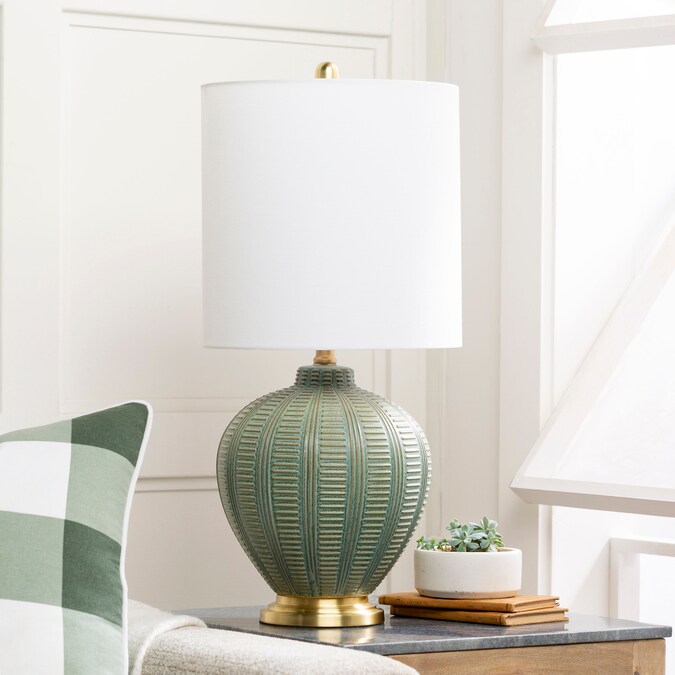 Livabliss Rayas 26-in Green On/Off Switch Table Lamp with Linen Shade