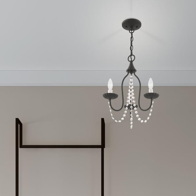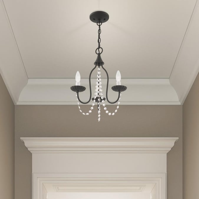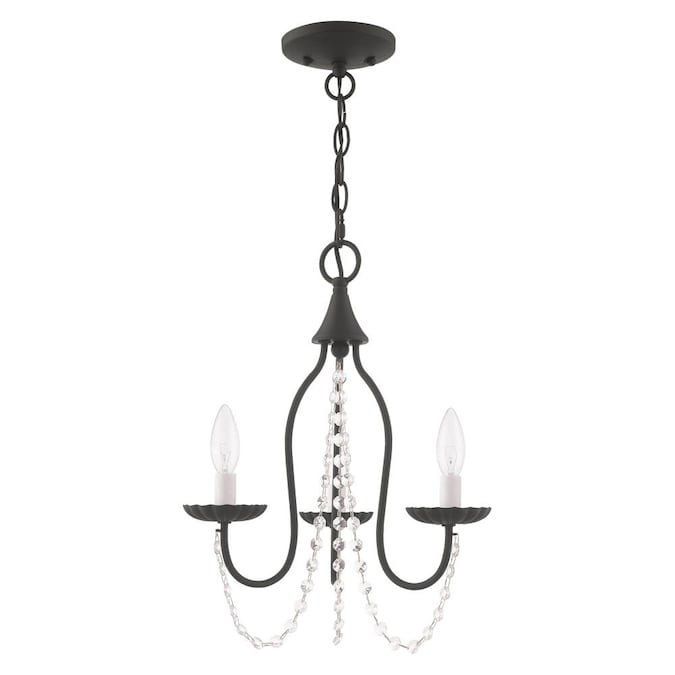 The simplicity of this three arm mini chandelier in black is gently draped with clear crystal trim making this an ideal fixture for many different decor settings.