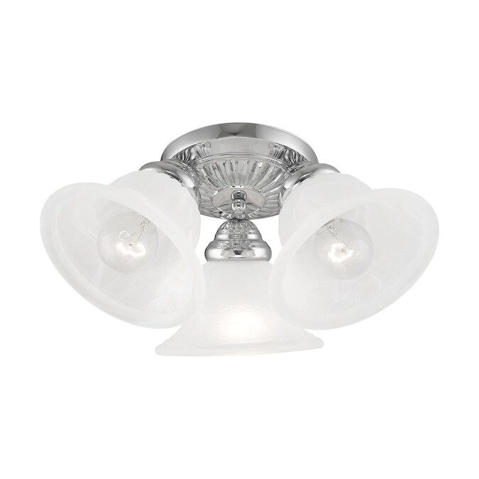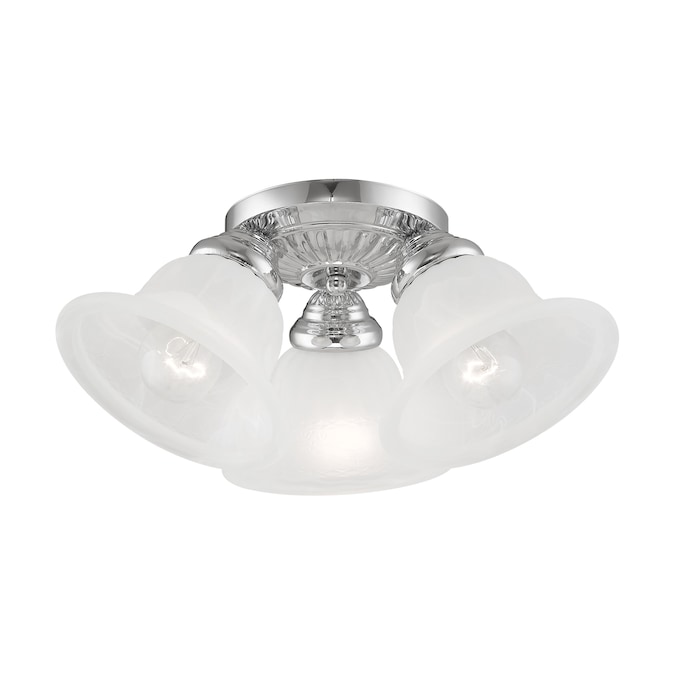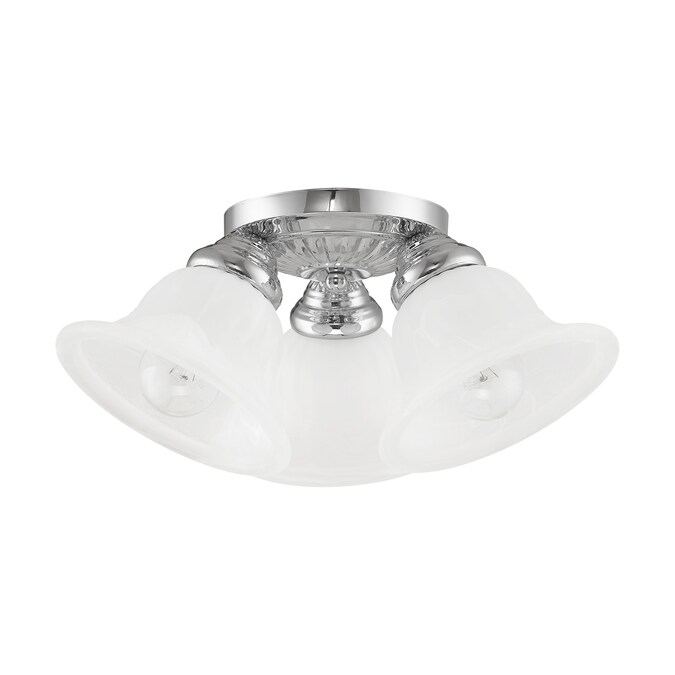 This three light flush mount from the Edgemont collection is a fine and handsome fixture that features white alabaster glass. Edgemont is comprised of traditional iron forms in a polished chrome finish.