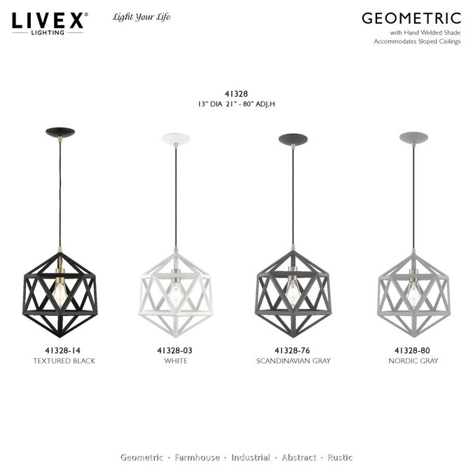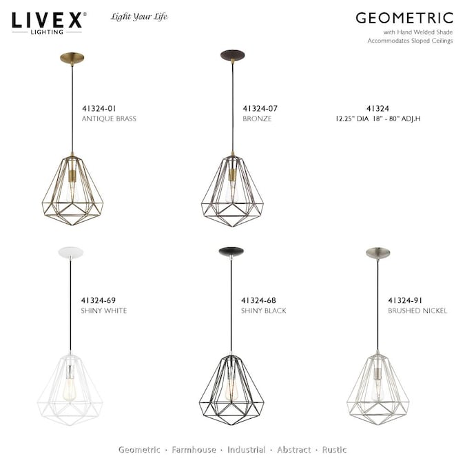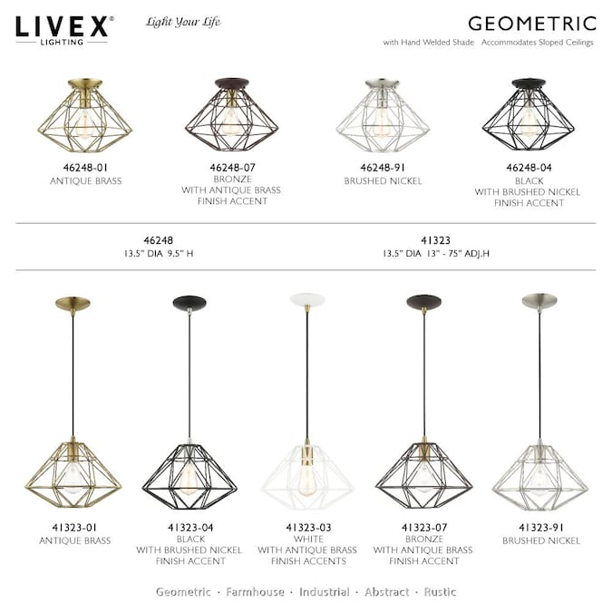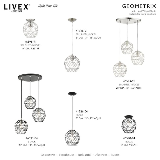 - Beautiful brushed nickel finish with geometric metal shade