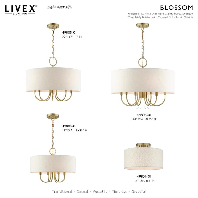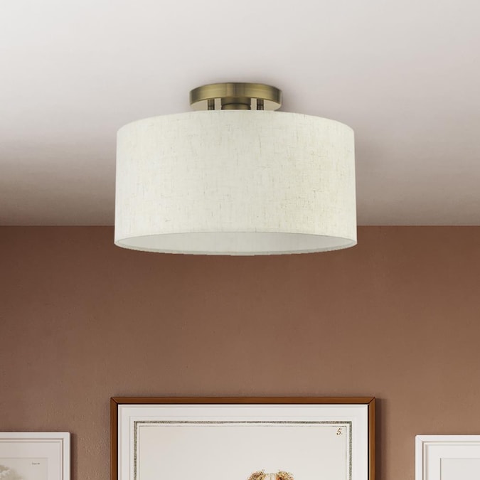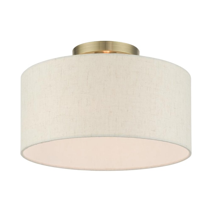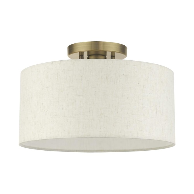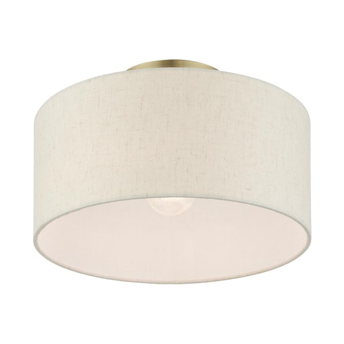 Add a touch of stylish sophistication with the blossom series, a graceful transitional collection. Look no further if you crave to add warmth and richness to any formal or casual interior. The elegant handcrafted hardback oatmeal colored shade will create a timeless feel to the hallway, bathroom, kitchen or a bedroom. This meticulously crafted single-light semi flush is shown in an antique brass finish.