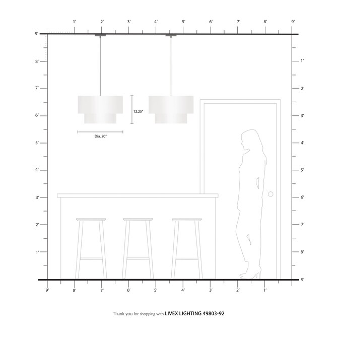- Fixture dimension is 20-in DIA x 12-in to 80-in adj H