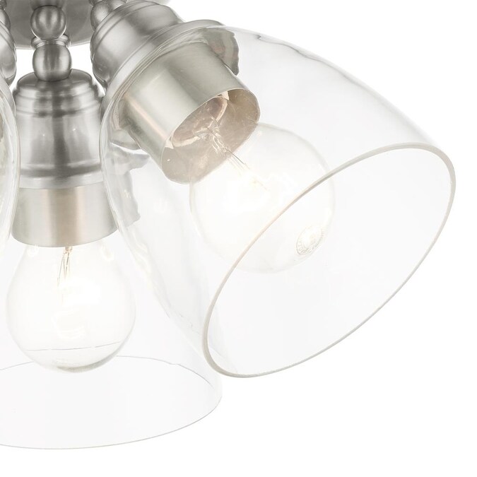 - Beautiful brushed nickel finish with hand blown clear glass
