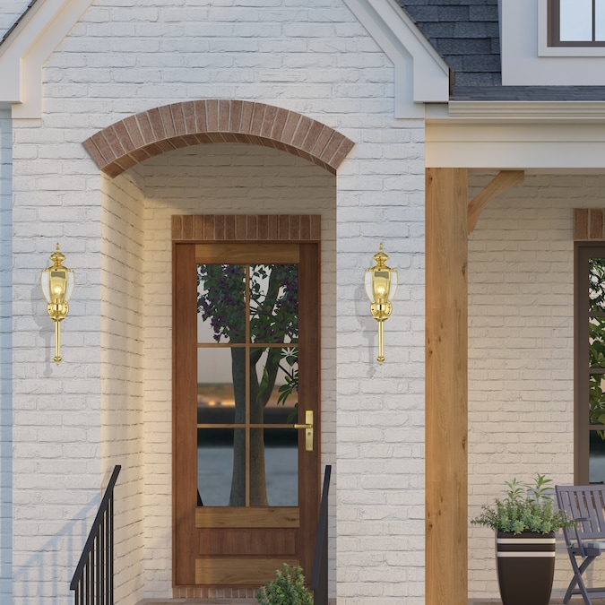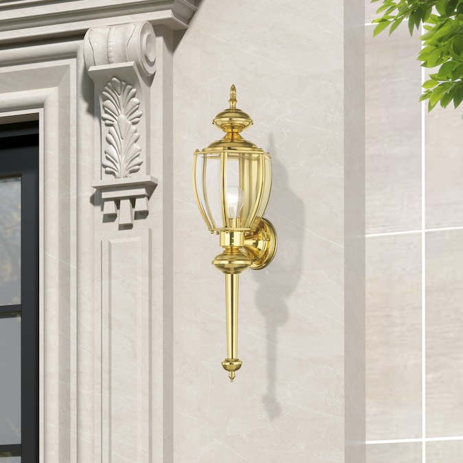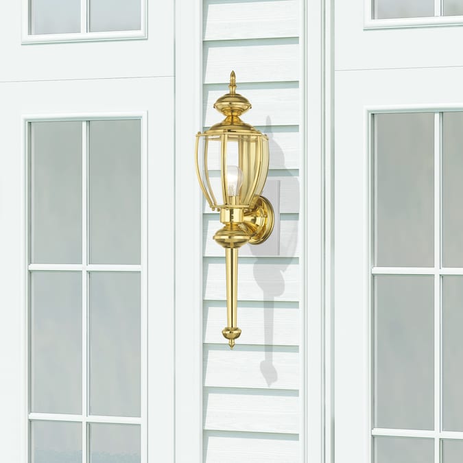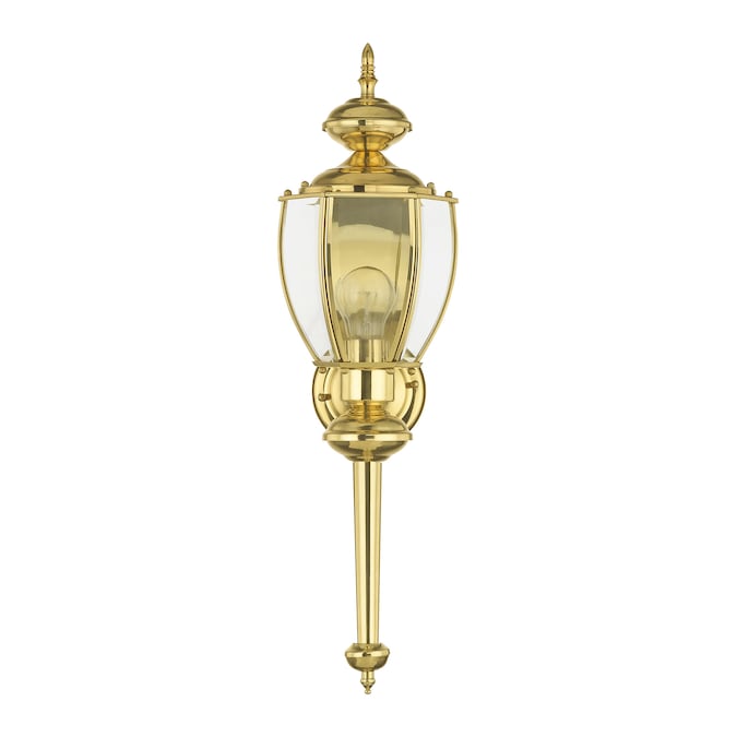 Livex Lighting Outdoor Basics 1-Light 25-in H Polished Brass Outdoor Wall Light
