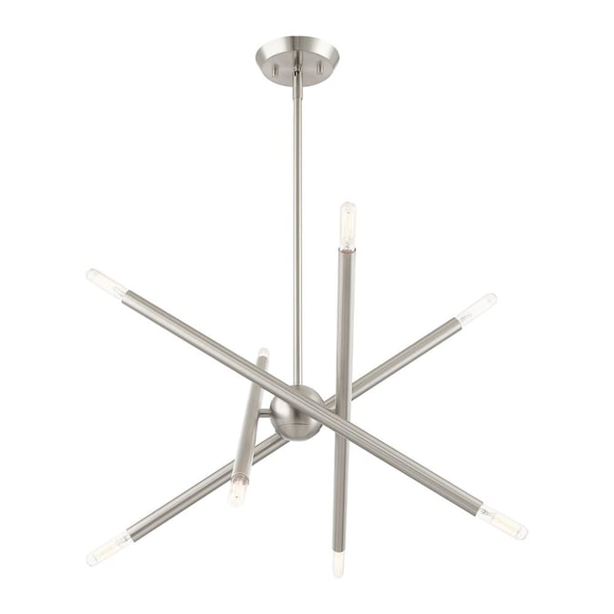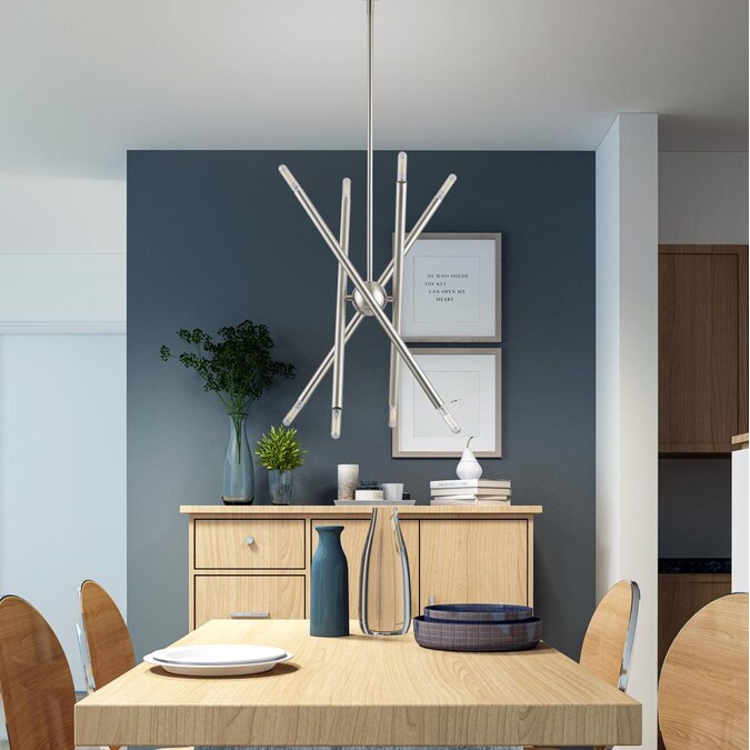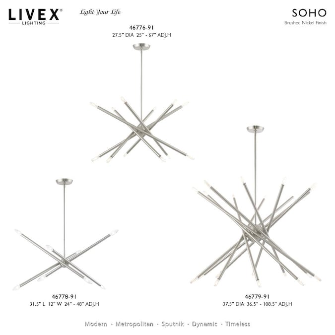 An iconic chandelier, the Soho features an organic, asymmetrical design in a brushed nickel finish. Ideal for kitchens or dining room settings, these space-aged inspired pieces are so versatile they can be incorporated into a variety of interiors.