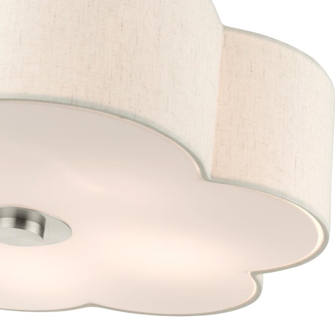 - Beautiful brushed nickel finish with oatmeal outside and white inside fabric scalloped shade; a satin white acrylic diffuser on the bottom