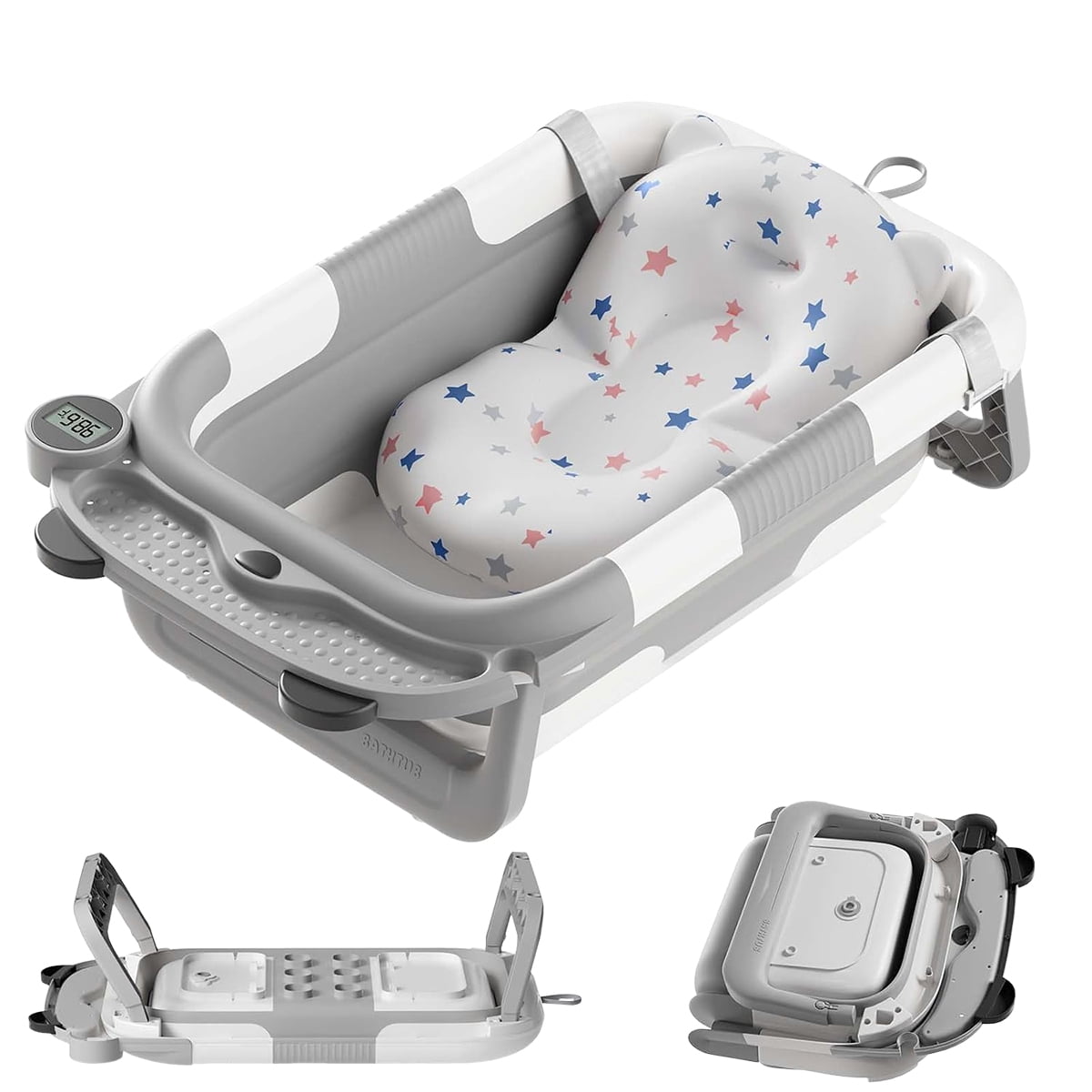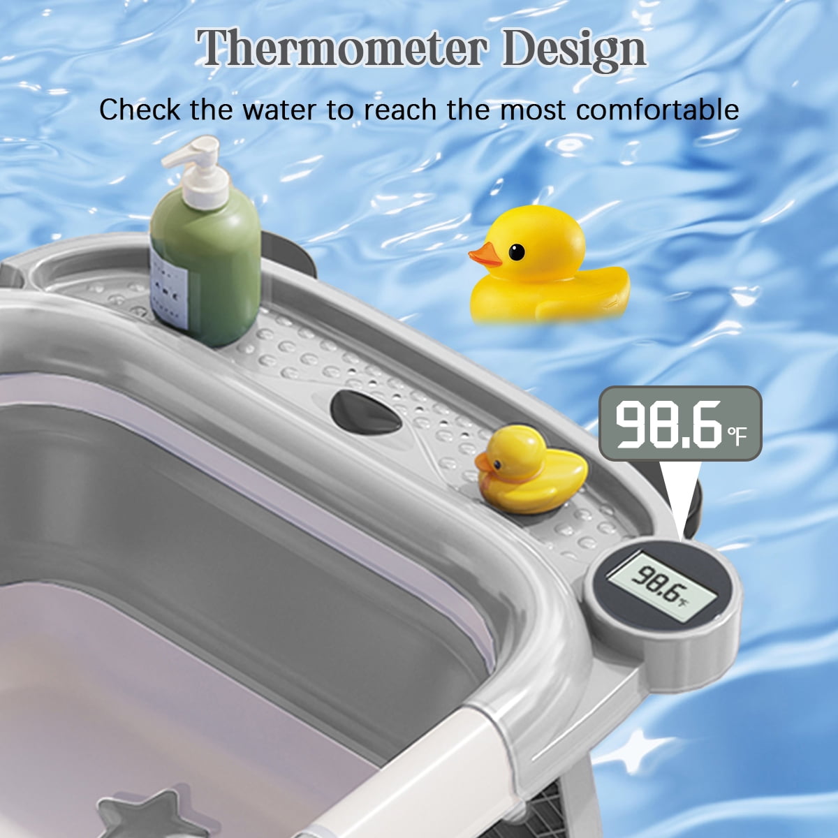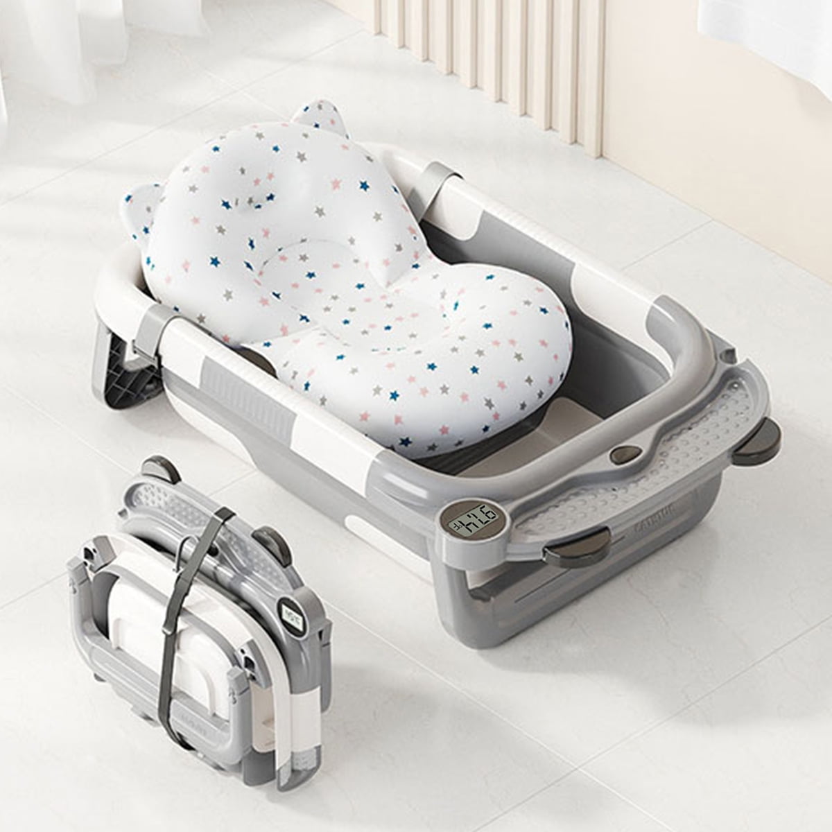Are you looking for the perfect baby bath tub for home and travel? Look no further! Liyufly foldable baby bath tub is equipped with real-time temperature sensing technology, making bath time safer and easier for your little one. This innovative bath tub features a three-way folding design, allowing it to collapse to a thickness of just 4 inches. This makes it easy to store in your bathroom,luggage and car trunk. Designed for use from birth to 3 years old, our bath tub includes a circular lock to maintain water temperature and a convenient storage slot for bath essentials. The efficient drainage system ensures quick clean-up, while the sturdy pyramid design guarantees durability and stability. Say goodbye to bulky, cumbersome baby bath tubs and say hello to convenience and peace of mind with our foldable, temperature-sensing baby bath tub. Make bath time a breeze wherever you go!
