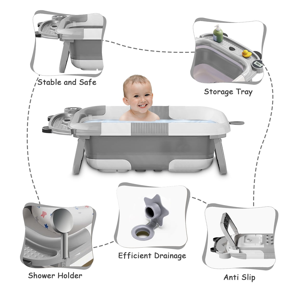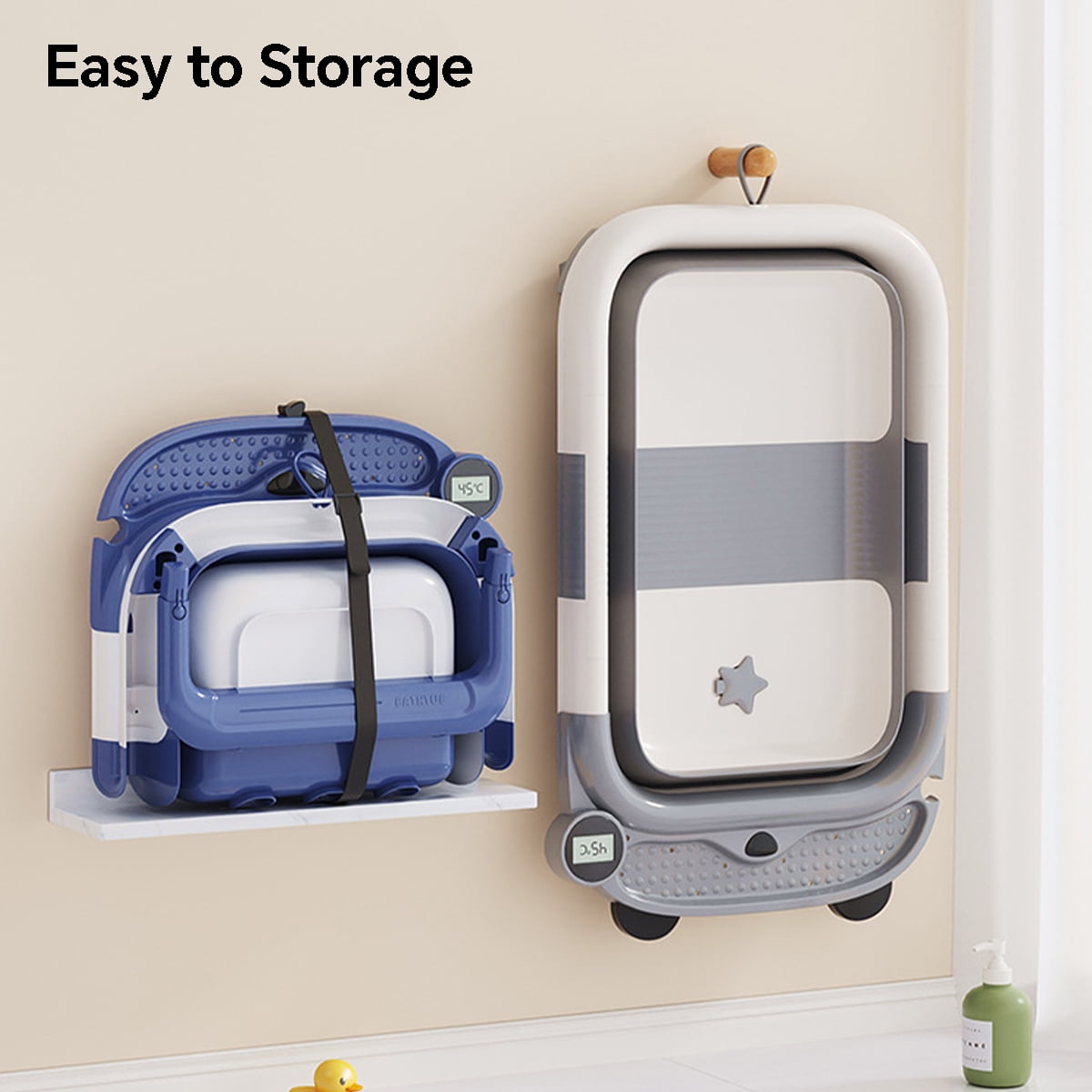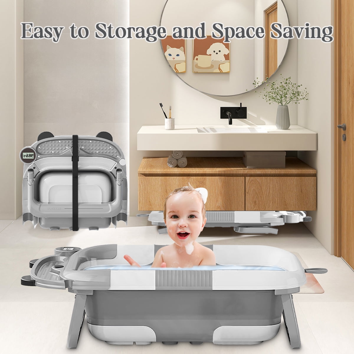 Are you looking for the perfect baby bath tub for home and travel? Look no further! Liyufly foldable baby bath tub is equipped with real-time temperature sensing technology, making bath time safer and easier for your little one. This innovative bath tub features a three-way folding design, allowing it to collapse to a thickness of just 4 inches. This makes it easy to store in your bathroom,luggage and car trunk. Designed for use from birth to 3 years old, our bath tub includes a circular lock to maintain water temperature and a convenient storage slot for bath essentials. The efficient drainage system ensures quick clean-up, while the sturdy pyramid design guarantees durability and stability. Say goodbye to bulky, cumbersome baby bath tubs and say hello to convenience and peace of mind with our foldable, temperature-sensing baby bath tub. Make bath time a breeze wherever you go!