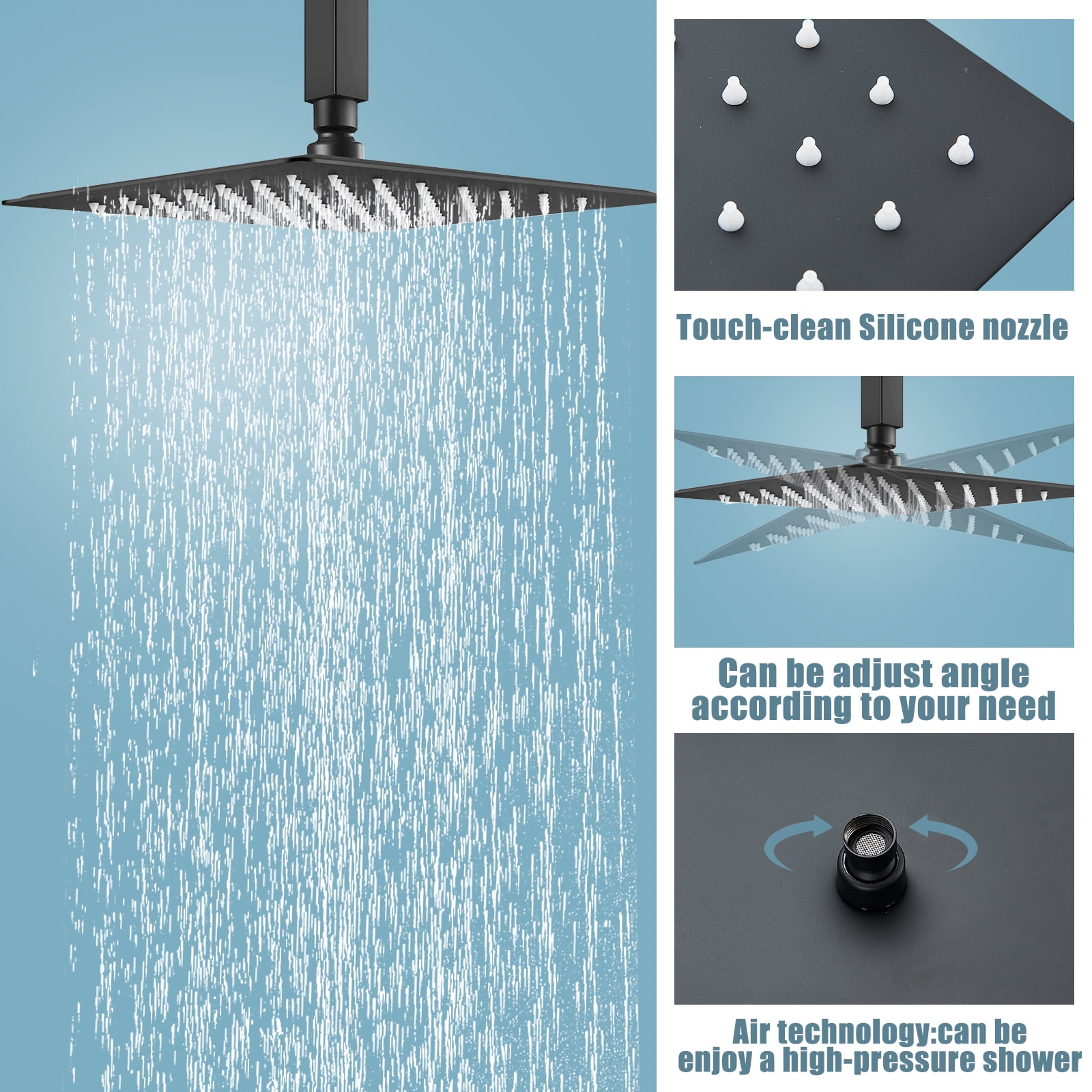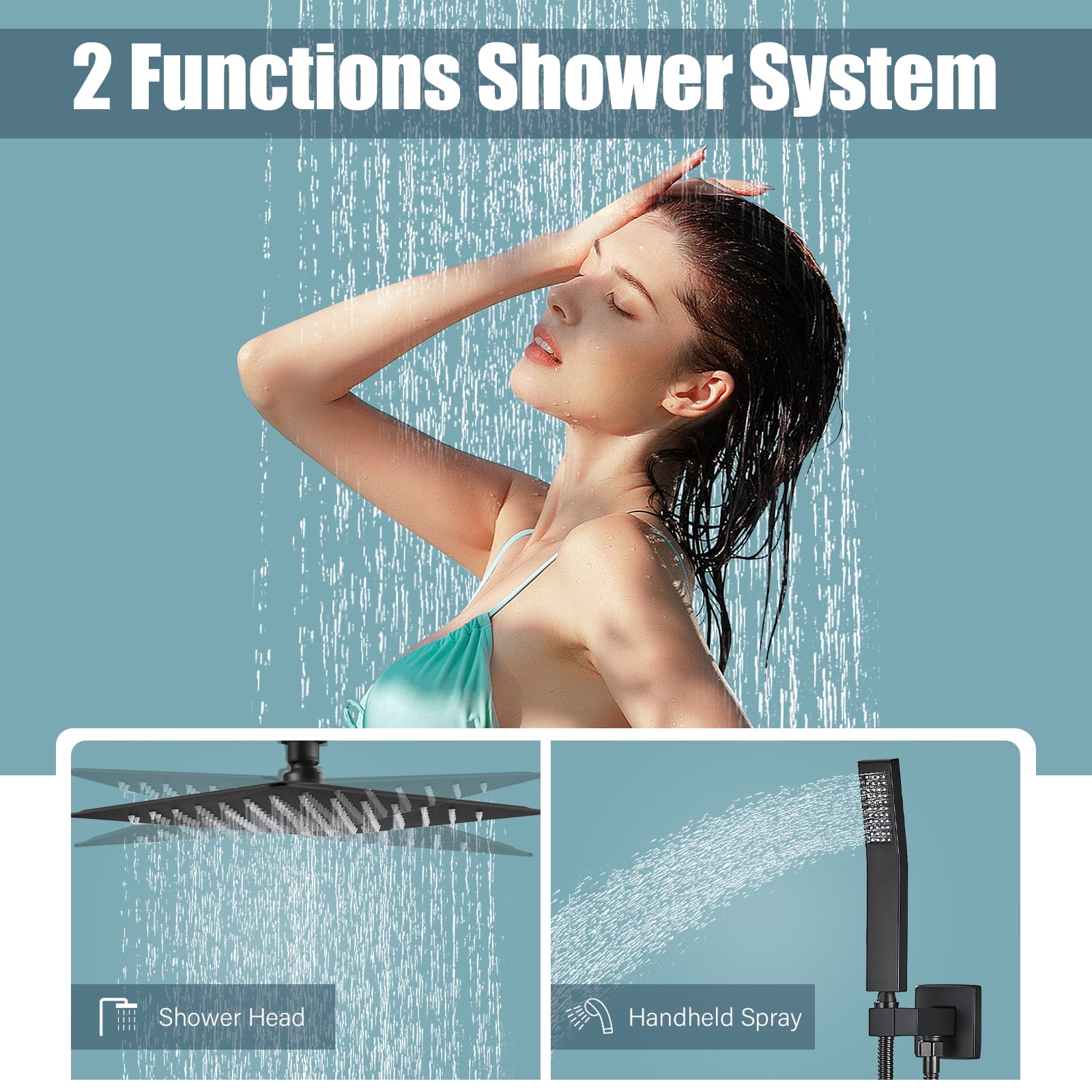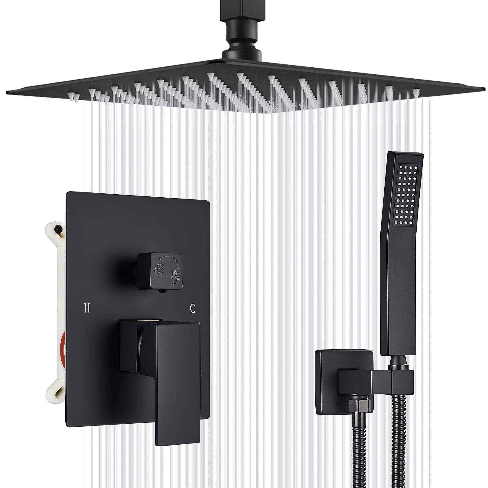【High Pressure Shower head】: The 12 inch shower head and handheld shower head use turbocharging technology to effortlessly provide excellent water pressure, allowing for consistent and powerful showering even at low water pressures. The large shower nozzle can cover the whole body during the shower, and easily flush the foam on the body 【WARRANTY】:Ten-year warranty for use. If the parts are defective, they can be replaced or replaced free of charge.If there are any problems with the shower faucet, please feel free to contact us. 【Highly Colorful Corrosion and Wear Resistant】:Elegant matte black finishes and sleek looking shower systems complement any decor. Additionally, our products are made from premium materials for rust-resistance and long-lasting durability. Allow you to enjoy a luxurious showerhead shower. 【Special Feature】: Both shower head and handheld shower can be adjusted,the swivel ball allows you to adjust the angle of the showerhead to suit your preference. 【Black Shower Set Package Includes】: Shower Head(12inch),handheld shower,shower hose(59inch),rough-in valve, shower arm,handheld shower holder,all install hardware.1/2″ NPT thread shower arm, standard in the USA.
