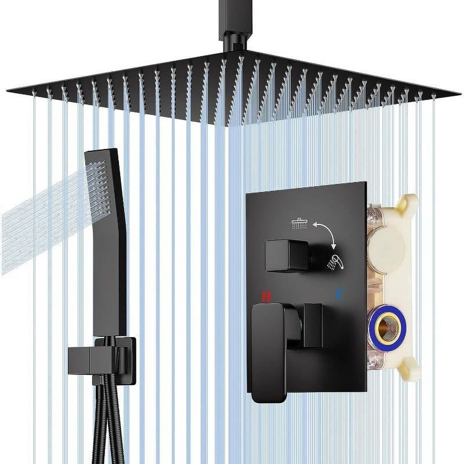 LlFFSSDG 12 inch Rain Shower Faucet Combo Kit Set System Ceiling Mount, High Pressure Rain Shower Head with Handheld Sprayer, Angle Adjustable Extension Arm/Flow Regulator Shower Set System