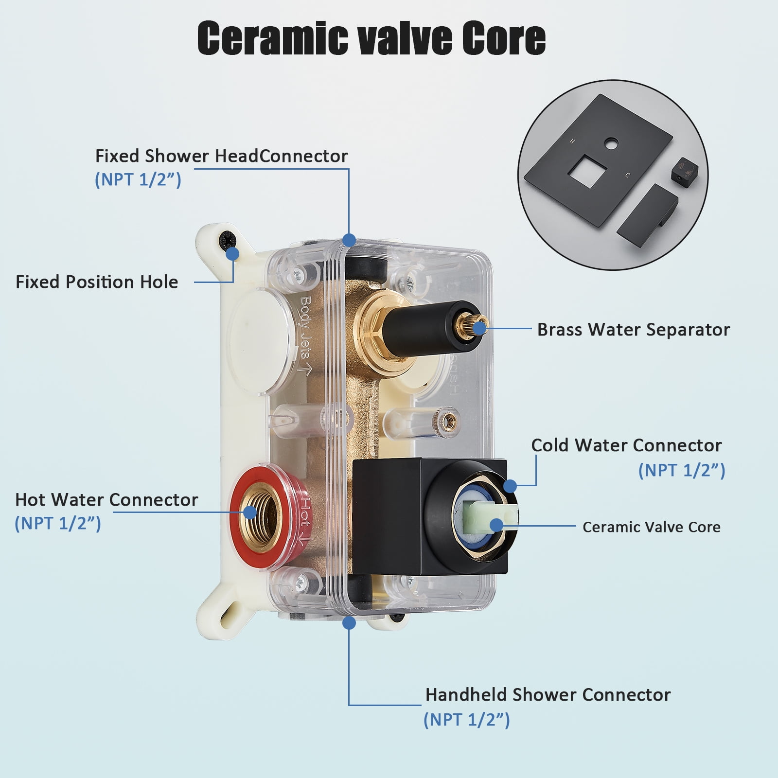 The LIFFSSDG shower set features a matte black finish, cast from precision copper, suitable for modern decoration, reducing scratches and corrosion in daily use, and easy to clean. There are two water discharge modes: top spray water and handheld shower water. The integrated cold melt mixed water valve body is made of selected copper material, with excellent air tightness. The high flow rate pressurized rain shower top spray mixes water and air to imitate natural rain, and the water droplets are round and full, Lightweight, smooth and non irritating, come and experience it quickly, we won’t disappoint you!