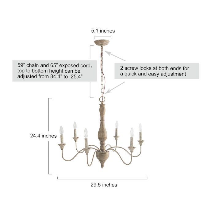 - Cottage handmade wooden chandelier size: 29.5-in W x 29.5-in D x 24.4-in H, canopy: 5.1-in D x 1-in H