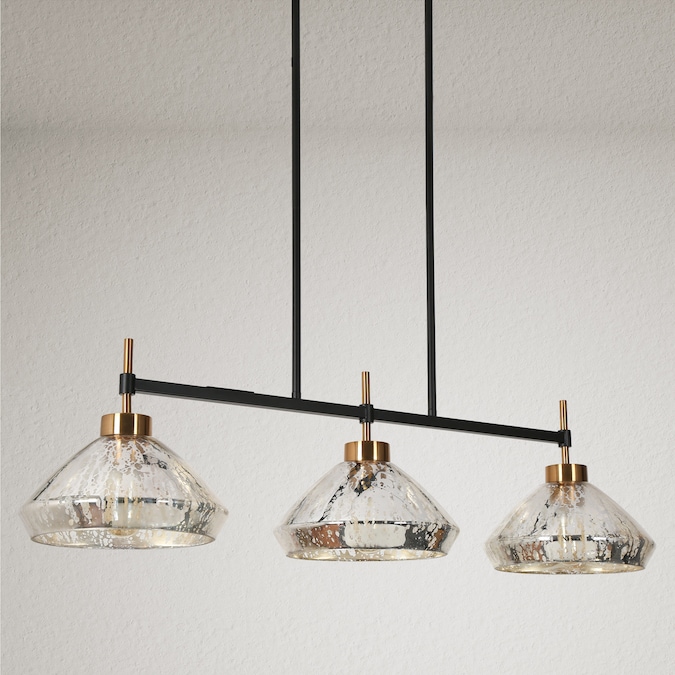 - 3-Light modern luxury pendant light features polished gold finish and glass shade with sleek black and mercury look finish
