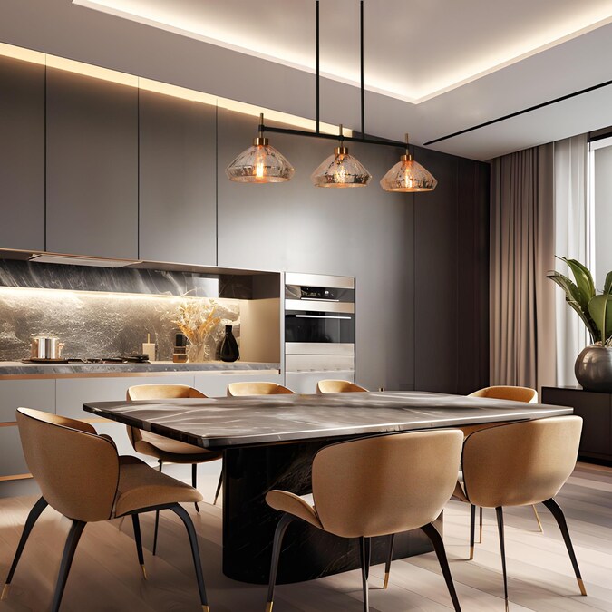 Create a warm and inviting atmosphere in your home with our modern island lights. Perfect for kitchen islands, pool tables, and dining rooms, this 3-light exquisite pendant light fixture is sure to impress. With sleek black finish and a variety of designs, this elegant unit is both functional and fashionable. The adjustable height allows for easy customization and the easy-to-install design means you’ll have your new lighting up in no time. Meanwhile, the clear open-to-bottom glass shade design enables it to glow warm light and easy to replace the bulbs. It is suitable for 14 x 16 feet room, or larger at 14 x 18 feet. Add some flair to your home with our modern island lights today!