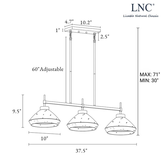 - Large linear pendant lighting dimensions: 37.5-in W x 9.8-in D x 9.4-in H(measured without hanging rods)