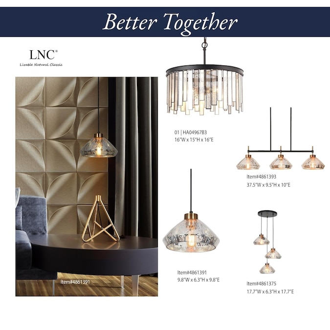 - Coordinate with 1-light mini pendant light from the LNC Anila collection to create a stunning and echoing look(Item #4861391)