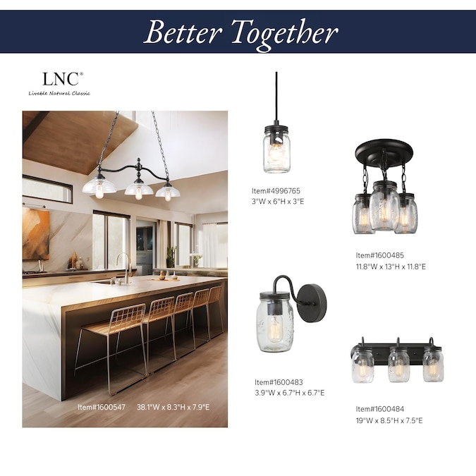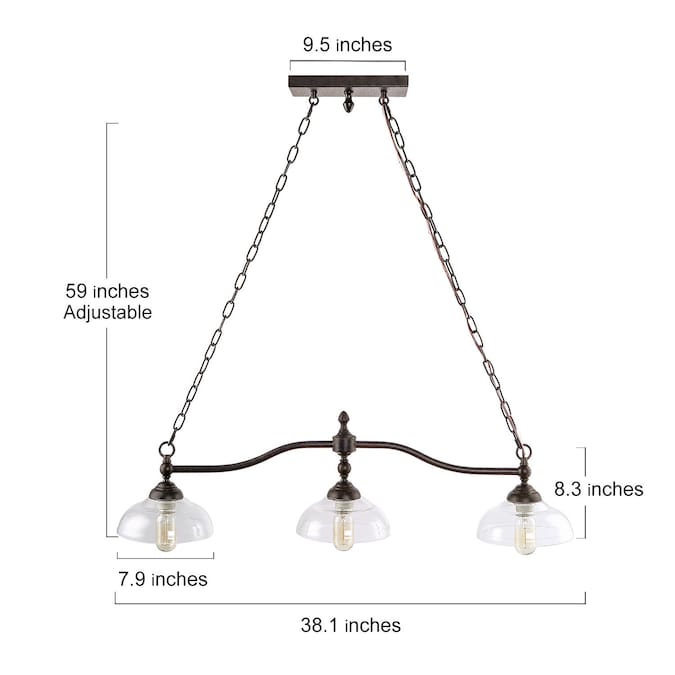 - 3-Light linear kitchen island lighting dimensions: 38-in L x 8-in W x 8.3-in H