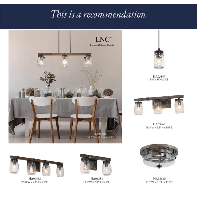 - Great match for the mason jar collection of 3-light vanity lights for a cohesive look: Item #4996745