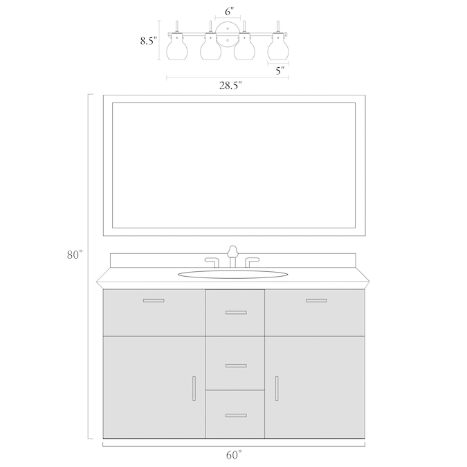 - Modern makeup vanity light: 30-in W x 7-in D x 9-in H, back plate: 6-in D