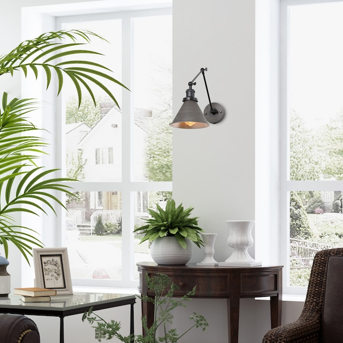 - Designed in brushed gray and matte black finish, plug-in 59-in length wire with on/off switch