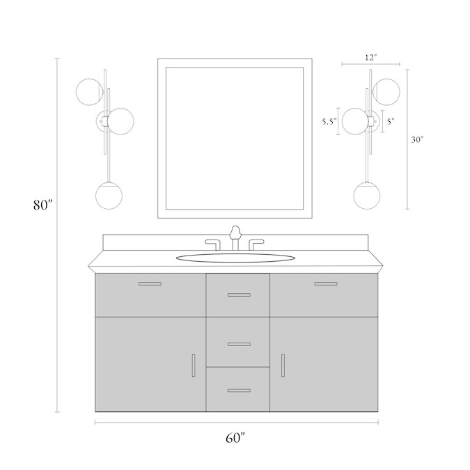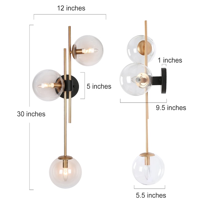 - Large wall sconce size: 30-in H x 9.5-in D x 12-in W , backplate: 5-in D