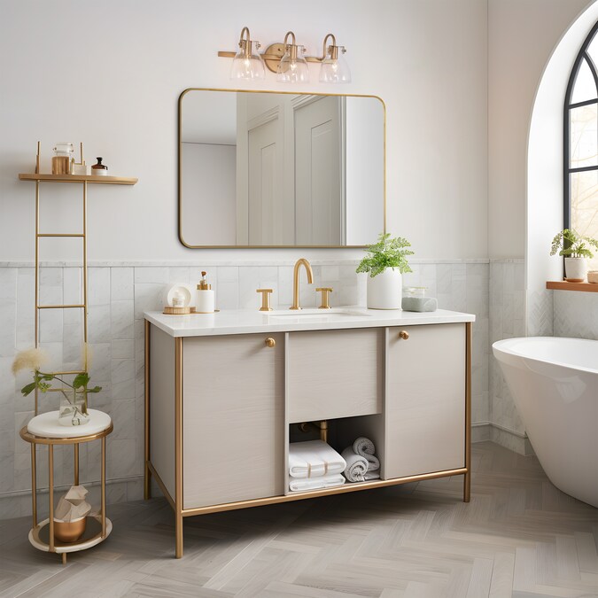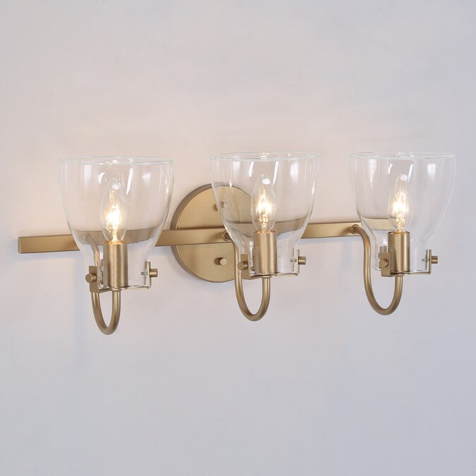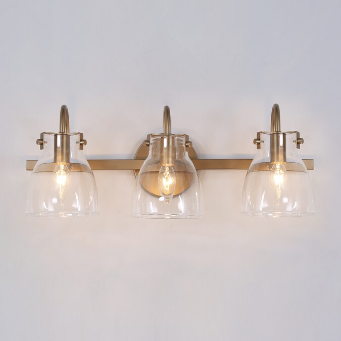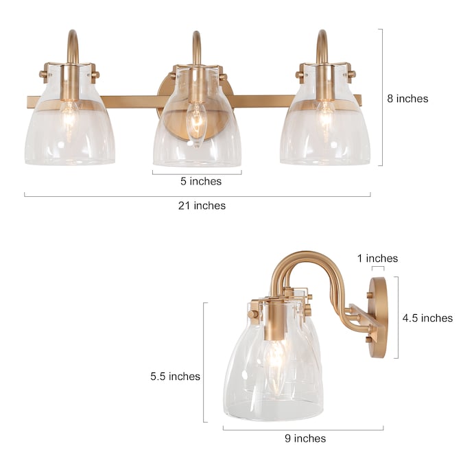 - Gold and clear glass shade bathroom vanity lights dimensions: 21-in W x 9-in D x 8-in H