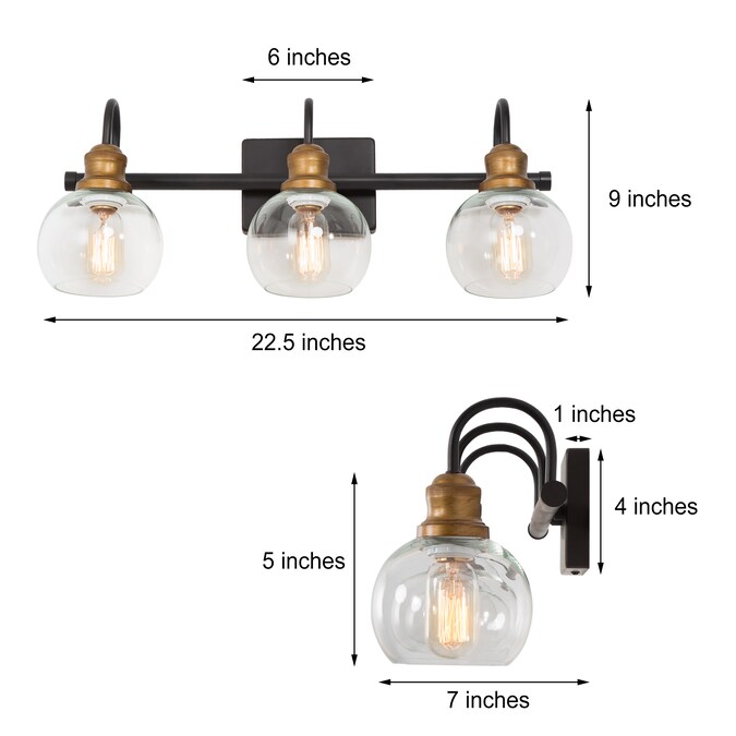 - Modern farmhouse vanity light dimension: 22.5-in W x 7-in D x 9-in H, mounting plate: 6×4 inches
