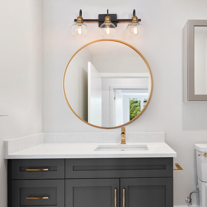 - Features matte black and brushed gold finish, clear and thick glass shade, perfect modern farmhouse vanity light for your bathroom, powder room or dressing room