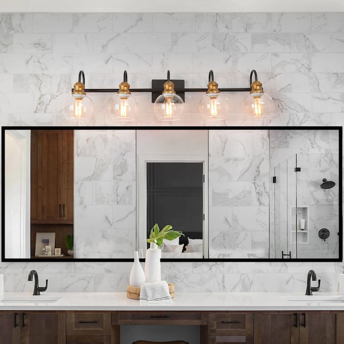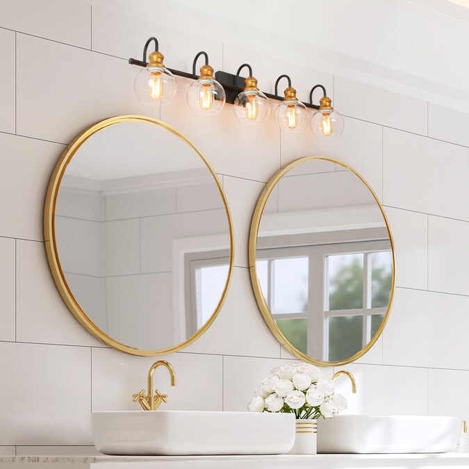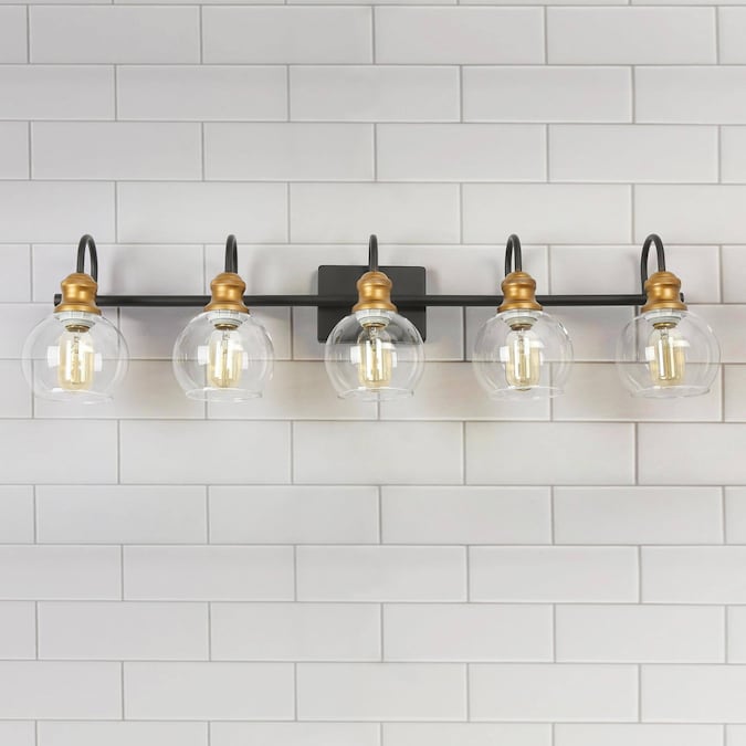 - Features matte black and brushed gold finish, clear and thick glass shade, perfect modern farmhouse vanity light for your bathroom, powder room or dressing room