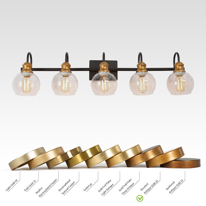 Designed by LNC, the LNC featured five-light bathroom vanity lights, with its unique geometric aesthetic design-fashion matching of dark bronze and brushed gold finish, it will add the ideal soft ambiance over the mirror to illuminate the whole room. This chic version of the dark bronze contemporary modern with brushed golden socket head give this vanity light a classic and modern feel, kettle shape lampshade to make light a larger expanse, exuding a solid sense of structure and style.
