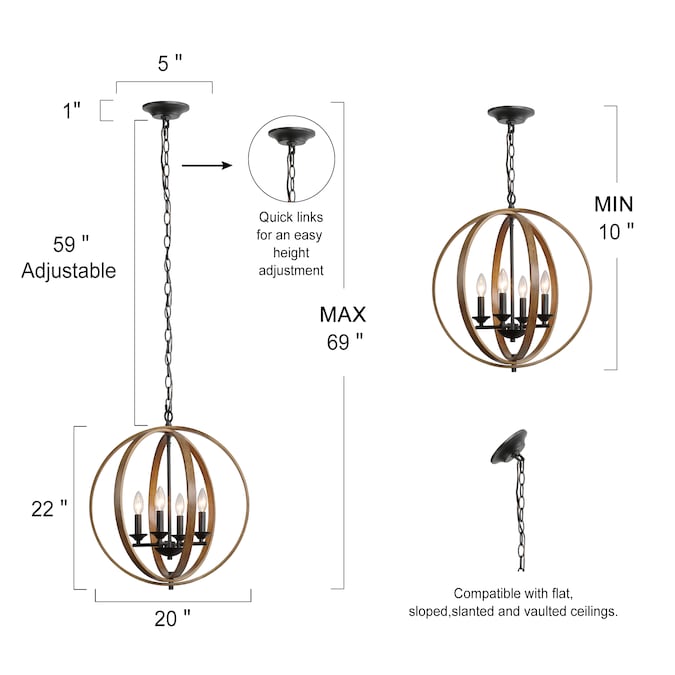 - Kitchen island pendant features globe shade in pine wood finish with sturdy black metal hanging chain to bring the eye-catching modern farmhouse style