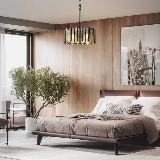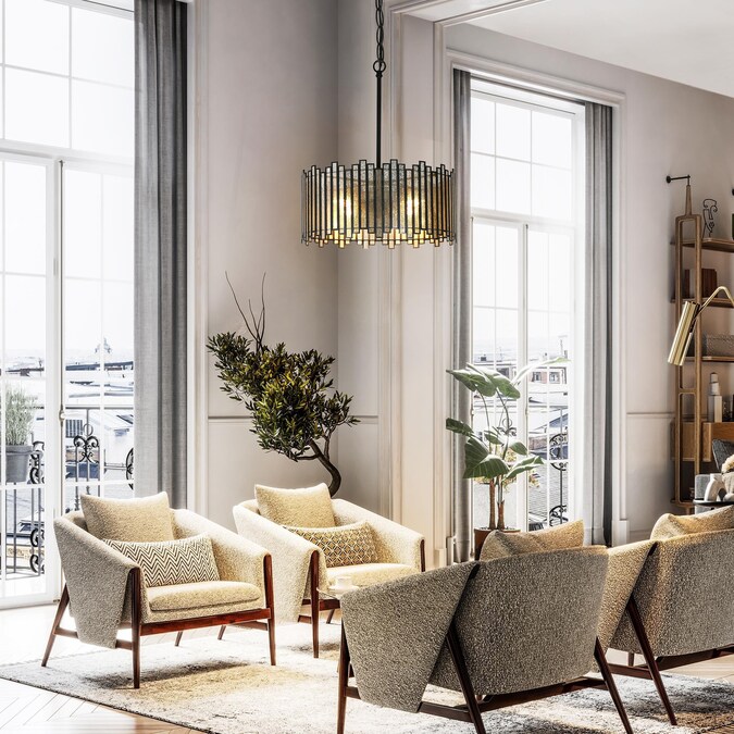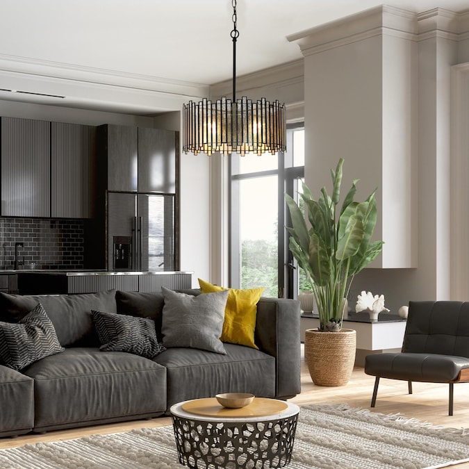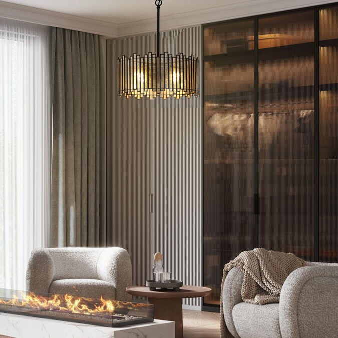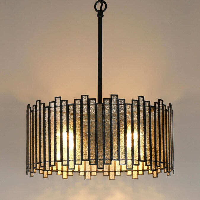 This Hemaaolay collection from LNC offers a wide variety of lighting fixtures with interlaced beautiful Hemaaolay pieces in drum lantern shapes forming a circular shade. All are designed to cast understated luxury and sophisticated modern charm to put in modern, transitional, and farmhouse-style home decor and spaces. Compared with traditional drum shade chandelier lights, this exquisite handcrafted black drum chandelier has been upgraded to be more artistic and functional. Crafted with premium metal and mercury glass, this modern chandelier light fixture is durable and long-lasting. The striking chandelier fixture is perfect for entryway, foyer, kitchen, dining room, bedroom, etc., adding elegance to your room. The rough surfaces of the handcrafted glass pieces create a unique texture that catches the light beautifully. This top-rated chandelier’s four lights deliver abundant illumination with LED bulbs, ensuring any space is beautifully and effectively lit. More for Hemaaolay collection: Search for semi-flush lighting Item #5138314 and Item #5075547; 1-light pendant lighting Item #5138303 and Item #3799787, 4-light chandeliers: Item #3799783 and Item #5138326 to find your perfect match. Upgrade your home with our captivating fixture today!
